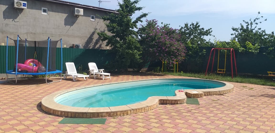 Очень хорошее уютное местечко. Хозяева Надежда и Евгений гостиприимные,отзывчивые и дружелюбные люди.Была очень рада знакомству Всё что нужно для комфортного проживания,всё есть Много зелени,бассейн,батут,теннисный стол,дети довольные Очень удобное расположение в центре,все рядом,столовые,кафе,магнит и другие магазины До пляжа бувально 5 минут. Обязательно ещё приедем ,спасибо за гостиприимство