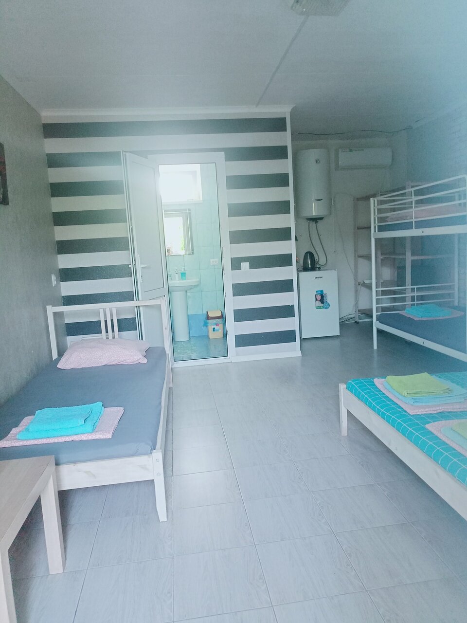Крайне редко оставляю отзывы, но в этот раз не мог остаться равнодушным. В первую очередь хочется сказать огромное спасибо!) Великолепное место в 5 минутах спокойной ходьбы от моря, 2 минутах от кафе-столовой, отделения сбербанка, продуктовых и хозяйственных магазинов. В номере было все необходимое и полезное — холодильник, кондиционер, телевизор, москитные сетки на окнах и двери, и wi-fi с великолепной скоростью!) На территории есть крытая мангальная зона, бассейн, детская площадка и огромная кухня со всем необходимым. На территории имеются парковочные места для автомобилей. Получился отличный отдых для всей семьи, с удовольствием приедем сюда еще!)