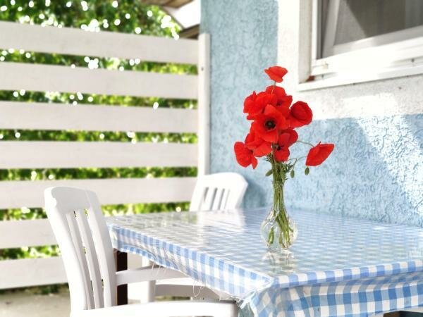 Удобства: — Открытый бассейн, собственный песчаный пляж, детская площадка. — Бесплатная парковка, прокат велосипедов, тренажерный зал. — Общая кухня, посуда, микроволновка, чайник. — Трансфер (платный), прачечная, камера хранения. — Проживание с животными, детские кровати (бесплатно для малышей).