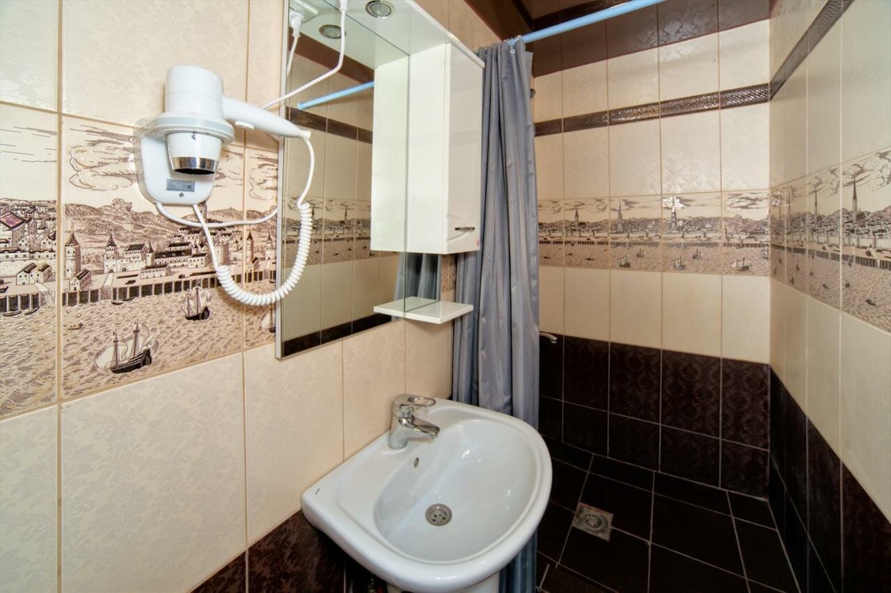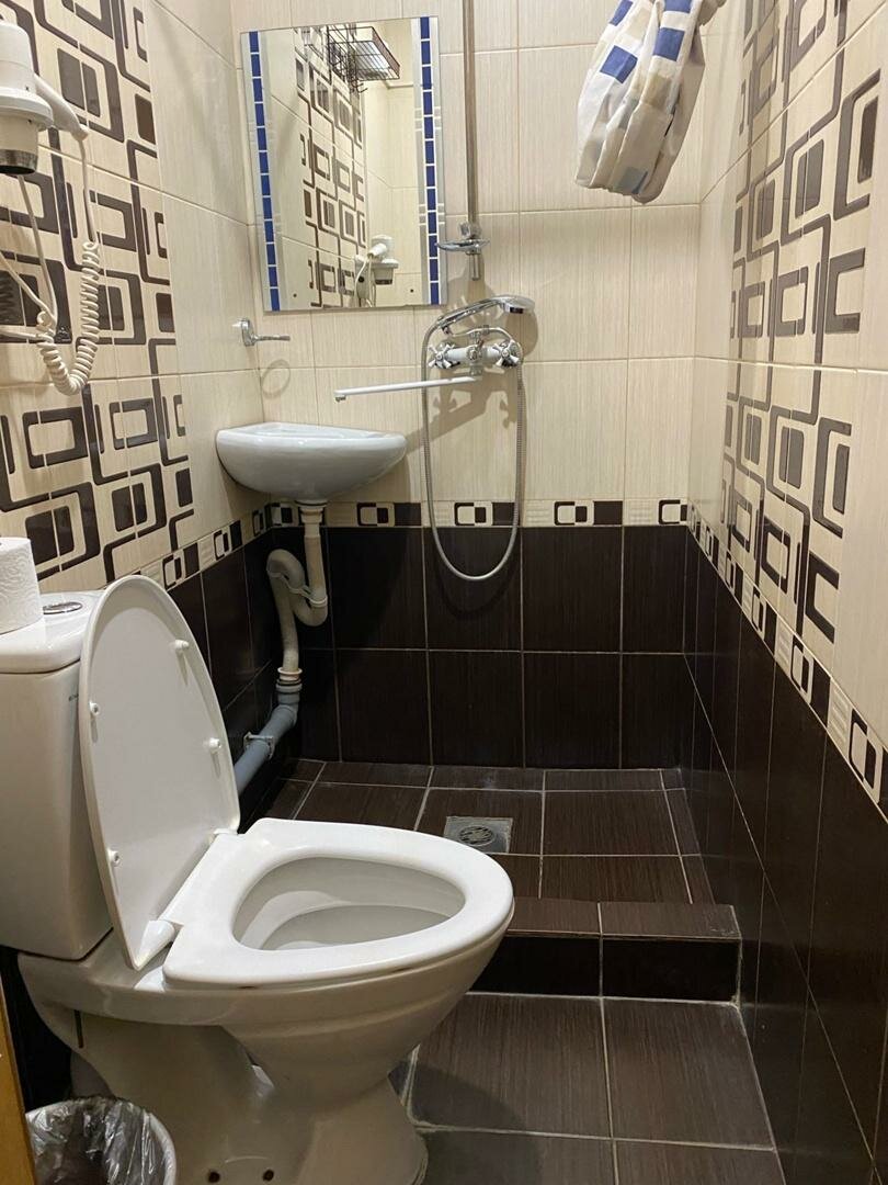 Всё очень скромно, санузел крохотный, напор воды слабый. Смог более менее нормально помыться, когда немного почистил известковый камень на лейке для душа. Между номерами звукоизоляция плохая, в четыре утра меня разбудил будильник сработавший в соседнем номере. Холодильник в номере отсутствует. В кафе готовят вкусно. Если бы цена на услуги была в 1,5 — 2 раза ниже, то было бы нормально. А так не рекомендую.