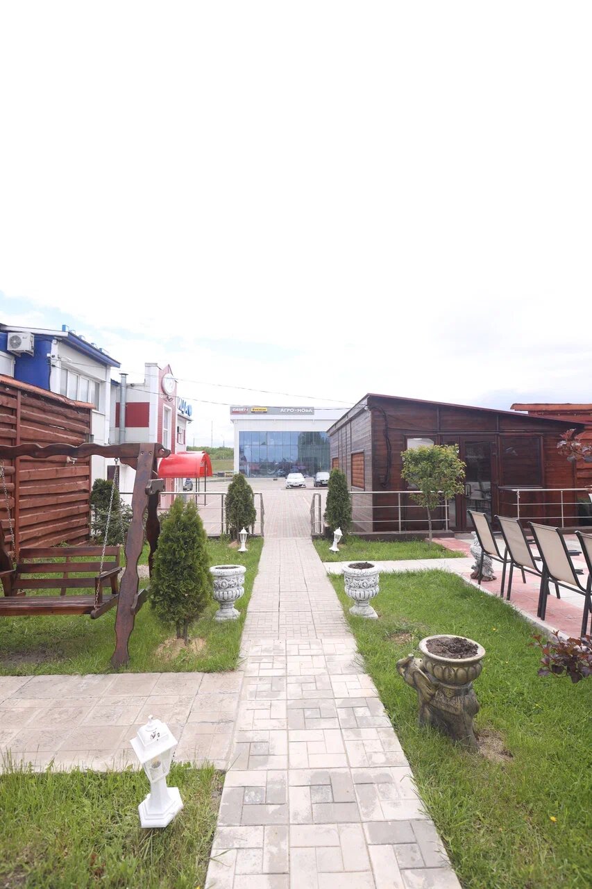 Хорошее место для остановки, цена средняя, еда вкусная, порции большие, обслуживание ресторанное, есть гостиница нормальная, в нашем номере даже балкон был с кроватью) На территории есть очень красивый парк с павлинами и фонтанами, много беседок, в самой большой телевизор с интернетом, на территории музыка. Не зря говорят где останавливаются дальнобойщики — там хорошо