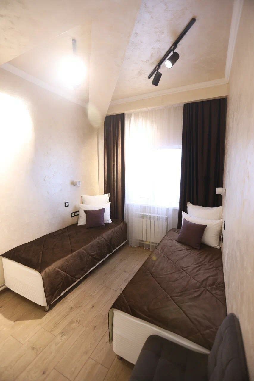 Заехали в 8 утра, нам скозали до следующего утра, цена 3 500, хорошо. В 12 чесов скозали ваше время вышло платите ещё 3 500. Постельное бельё не эаправлено, а лежит в шкафу мокрае, не сырое, а мокрое. Душ то киняток то холодный плавающий. Как гостиница просто помойка. Звезду поставил только за кухню кормят нет плоха. Привет Магисяну каторый поставил 5 звезд, родственник.