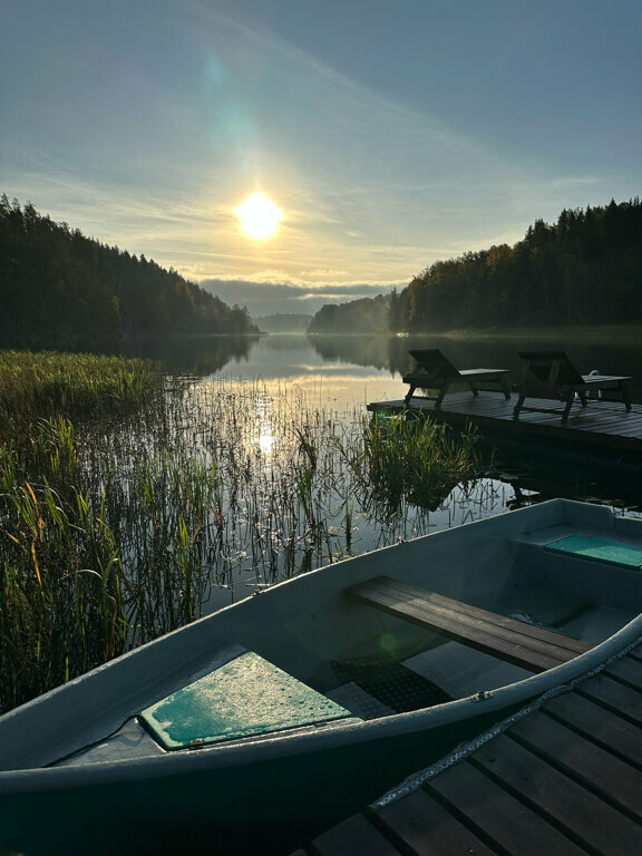 Великолепное место ! Восхитительный вид из окна ,со второго яруса утром особенно прекрасен. Чудесное озеро , байдарке, лодки, сапы. Баня тоже понравилась !. Около домика мангал, уголь советую привозить с собой, но и здесь можно купить.в домике всё необходимое есть. Отдыхали в июне 2024 самые прекрасеые впечатления. Очень отзывчивые ребята Даша и Сергей, отдельное им спасибо !!!