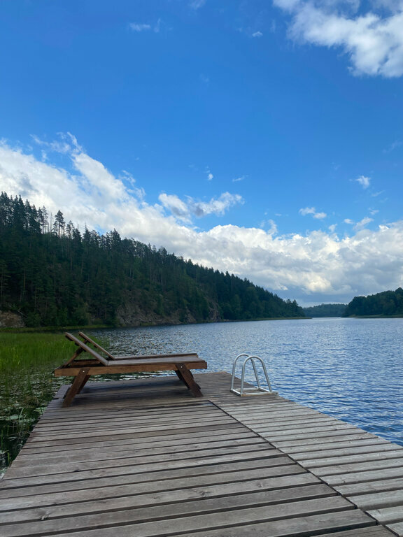 Удобства: — Собственный галечный пляж (100 м²), сауна (платно), баня, ледовый каток. — Летняя веранда, камин, терраса, площадка для пикника. — Прокат лыжного снаряжения, катание на лодках и каноэ, рыбалка. — Бесплатная парковка, трансфер от/до вокзала.