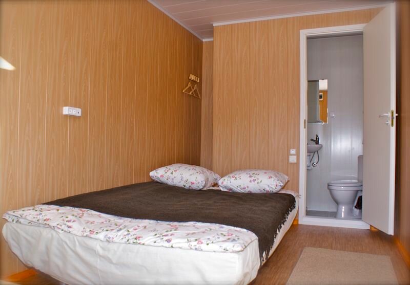 - Хорошие условия проживания (домики со всеми удобствами).
