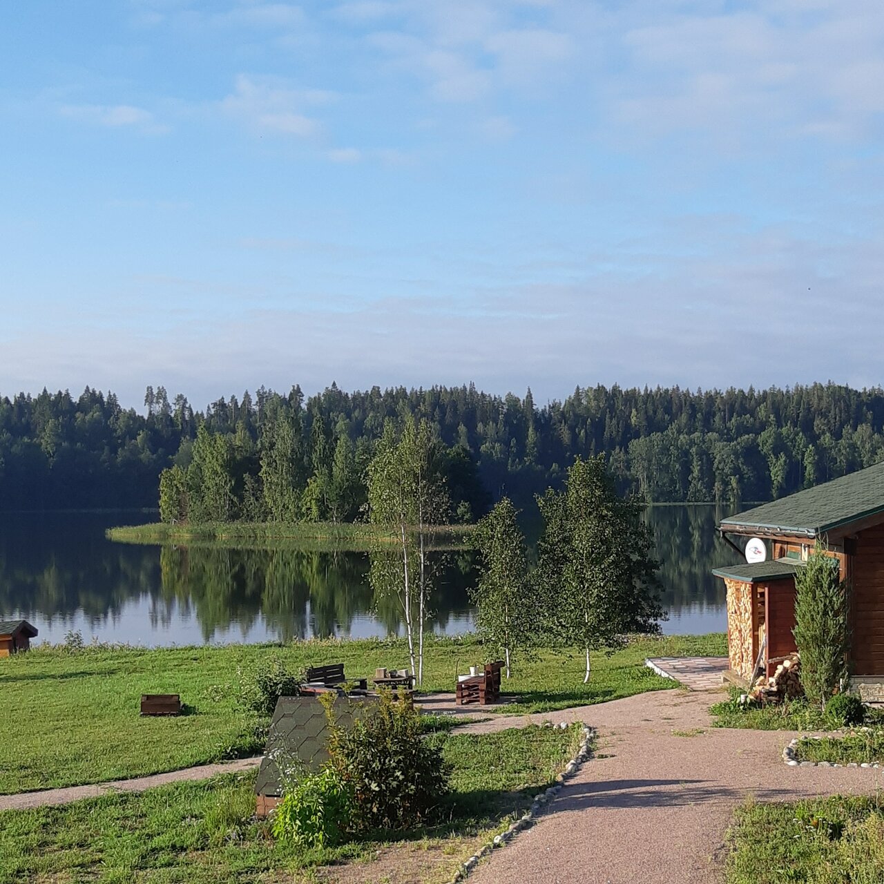 Шикарное и тихое место для отдыха. Есть все необходимое для проживания. Хозяева очень заботливые и приветливые. Озеро красивейшее, идеально для купания, вода теплая. Комаров не было, целый день купались загорали и ловили рыбу. До 12 ночи на улице очень светло, как в белые ночи. Спасибо Сергею и Ольге за отдых!