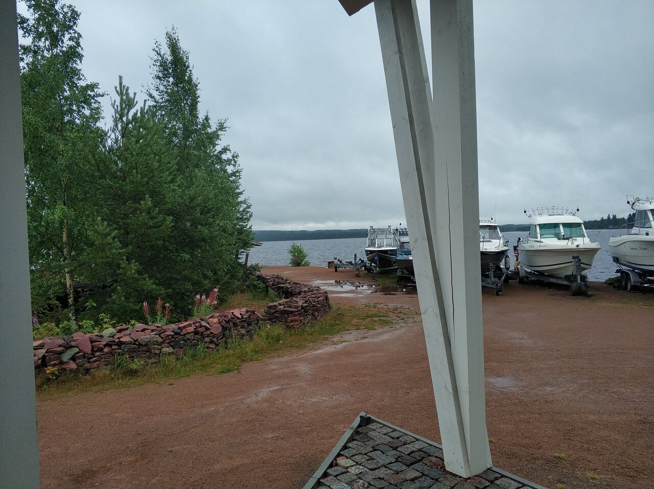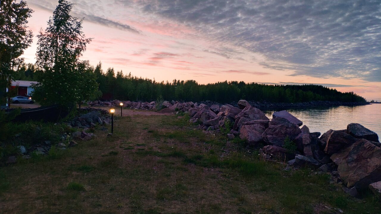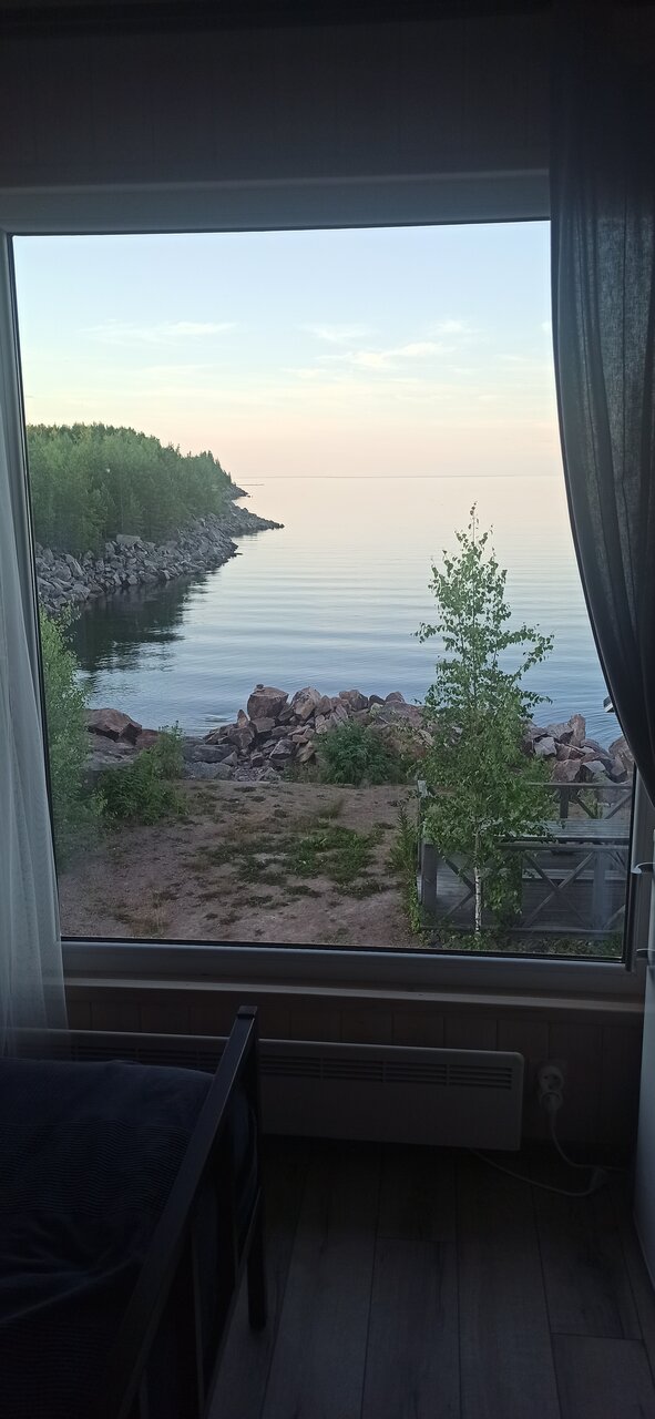 Чудесный, хоть и маленький, номер с потрясающим видом на Онегу. Очень приятная сотрудница кафе. Вот и все плюсы. Минусы: на открытом месте (в жару некуда деться), территория крохотная (явно для владельцев лодок — рыбаков). Мусор не выносят до твоего отъезда, не убираются. И самое катастрофичное для нас: в непосредственной близости от домика прямо под окнами беседка с мангалом. Т.е. люди, проводящие вечер в беседке, как будто у тебя в номере: все звуки, даже тихие разговоры и т.п. слышны идеально. Худшим оказалось то, что в сроки нашего пребывания приехали хорошие знакомые сотрудников (Елены и Сергея) базы. Семья с 3 детьми. И эта компания сидела (ела, пила, общалась) за полночь. Замечание делать смешно, когда управляющиеся расслабляются вместе с клиентами. К сожалению, это было оба вечера. Пришлось при 33 жары закрывать окно ради тишины.