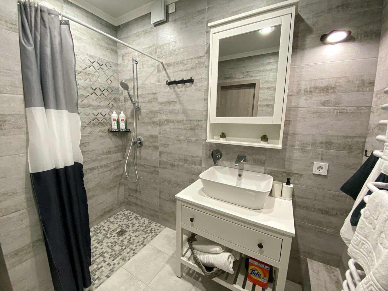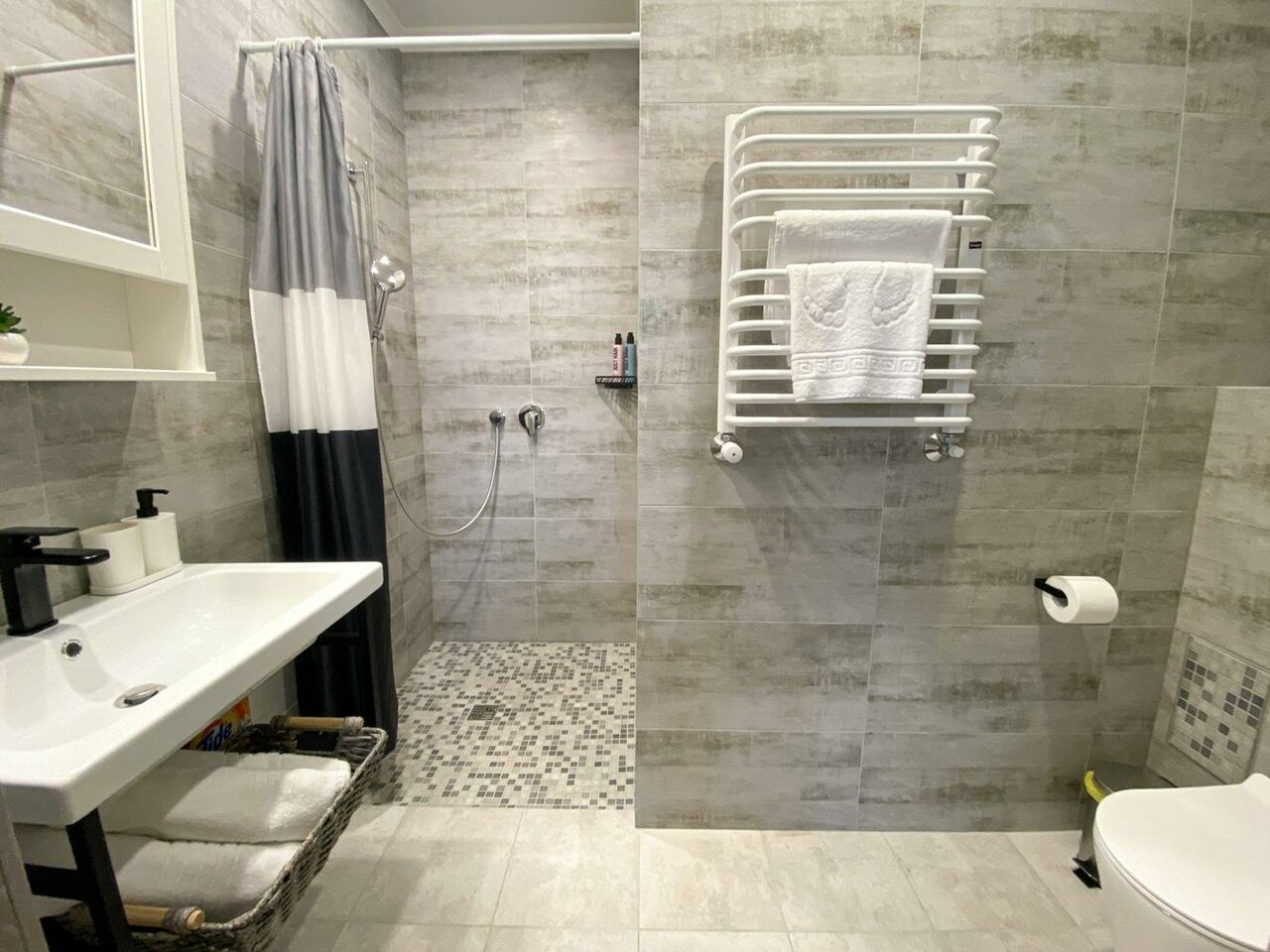 Очень уютные апартаменты совсем близко к морю. Есть все необходимо, ну просто вот совсем все. Уютно, чисто, достаточно места. Ванная комната идеально чистая, есть шампунь и гель для душа, мыло. Да, вода имеет запах, но нас это не расстроило. Рядом есть магазин и несколько приятных кафе, правда цены московские)) Все равно хотим вернуться!