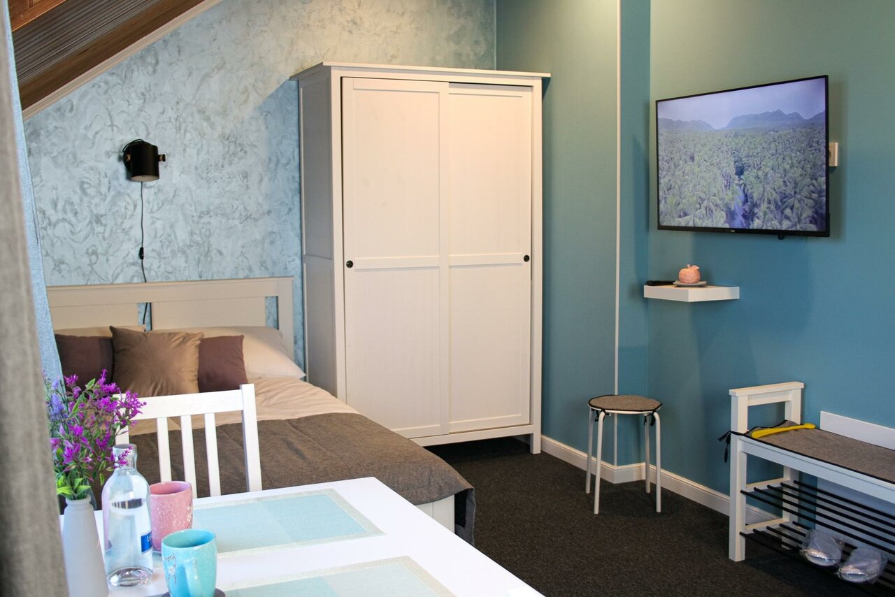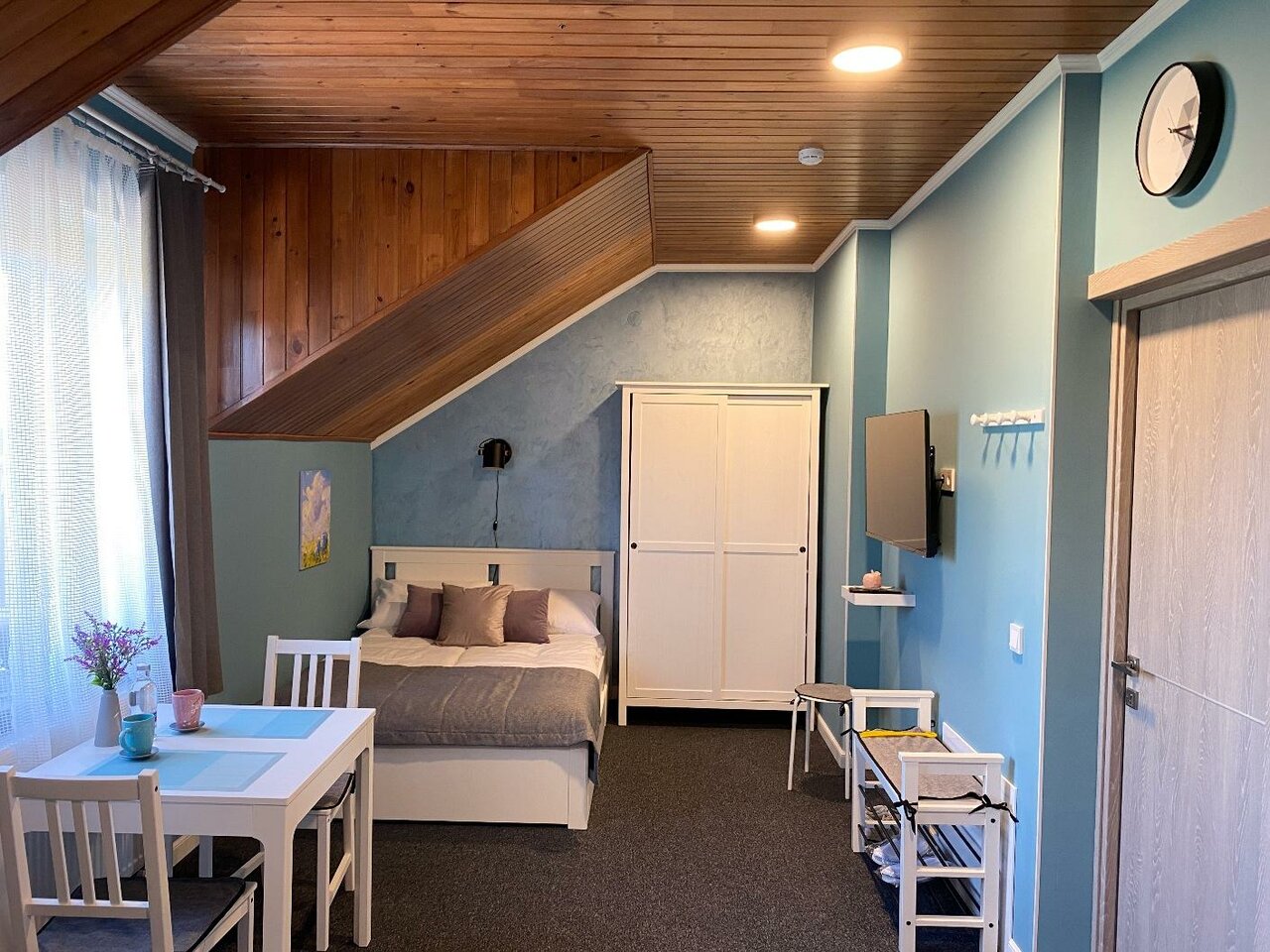 Жили с 15.09 по 17.09., снимали аппартаменты на 3-м этаже. Всё новое, очень чисто, комната очень уютная и обеспечена всем необходим для длительного проживания. За такую цену — это просто шикарный выриант! Из минусов — оооочень мягкий матрац и мягкая подушка (но это чисто субъективное мнение), кому то может наоборот нравится!