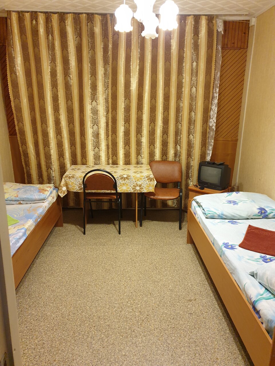 Только для любителей экстрима. На улице холод но, в номере тоже, конец августа. Обогревателей нету. Поэтому полностью в куртке спать надо. Ну и обстановка жестокая — вечный ремонт своими руками и ламповый телевизор с советской посудой.