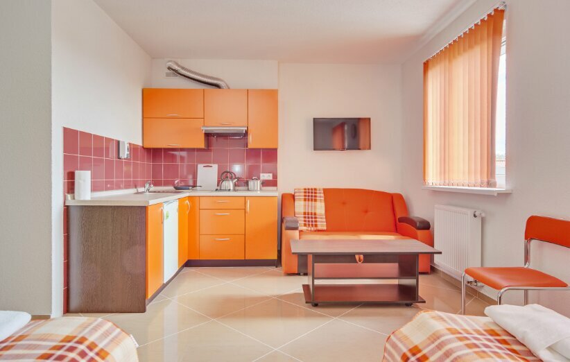 - Аппартаменты с кухней, но без утвари и посуды