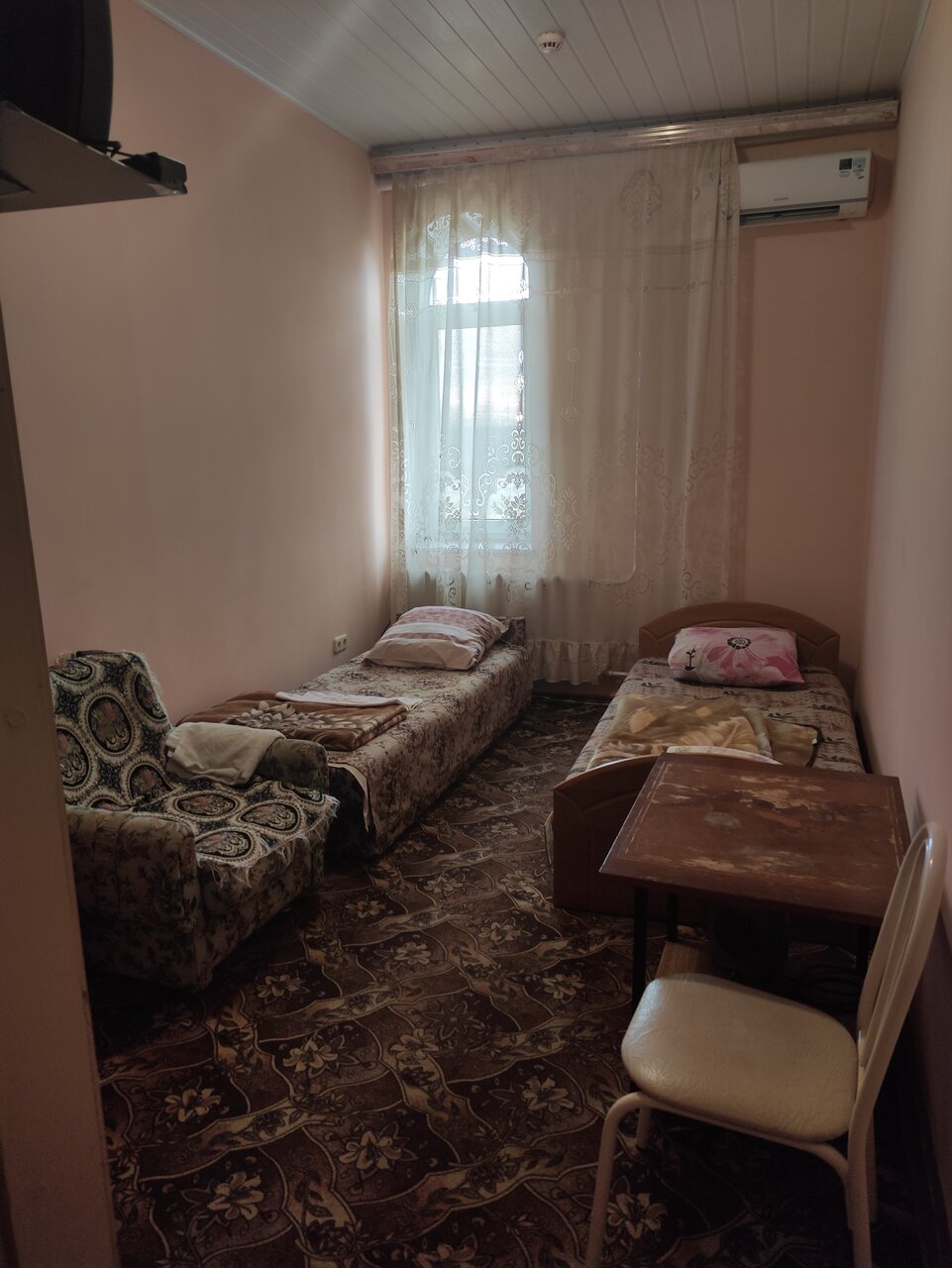 2х местный вышел на в 1600 в августе, цена качество. Матрасы конечно лучше заменить, уже пружины мешают спать. Из плюсов телевизор и душ в номере- а что еще нужно для отдыха)! Туалет правда один на этаже, но чисто! Нас все устроило! Спасибо