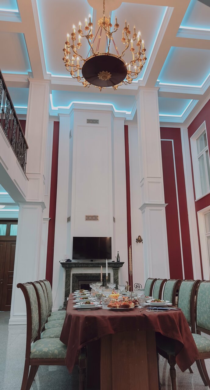 Снимали дом на выходные , остались в полном восторге ! Шикарная усадьба с интересной историей. Дом уютный , тёплый , камин добавляет атмосферы) Много спален и санузлов , последнее бывает не часто. Парадный зал с отличной акустикой .