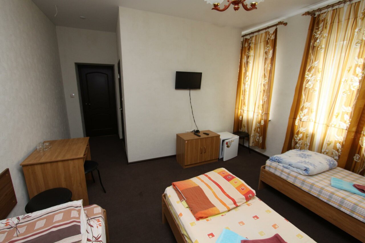 Услуги: — Номера от 1500 до 2500 ₽/ночь (3★) — Кондиционер, санузел, телевизор, Wi-Fi — Бесплатная парковка и трансфер (включая аэропорт) — Ресторан, кафе, столовая (питание по меню или полный пансион) — Прачечная, камера хранения, уборка — Сад, круглосуточная стойка регистрации