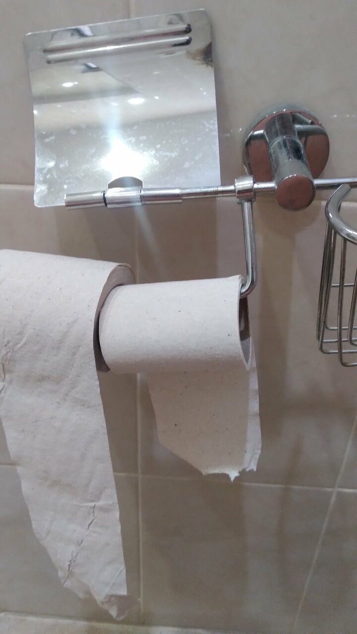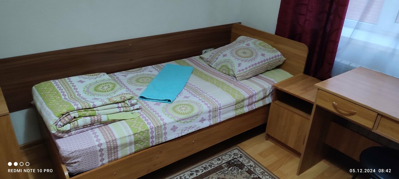 Ночевали в ожидании рейса от уральских авиалиний, матрасы пружинами в ребра упирались, пришлось подкладывать махровое полотенце. Постельное белье рваное… Поддон в душе ржавый протертый. Всё старое.