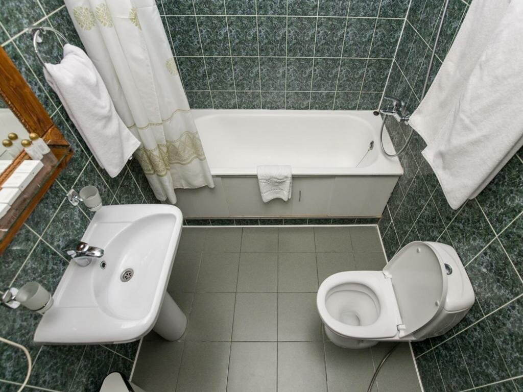 Всё бы хорошо, но : потрепаны полотенца и пахнут не свеже; тапочки расчитаны на не мелких:) — очень не удобно; первый раз сталкиваюсь с тем, что ты сам должен заправить кровать (за 2400р!/сут) — почему?!, и одеяло почему-то в шкафу для обуви и верхней одежды! ; ну и сам номер потрепан и пыльноват. НО- отличные завтраки! Спасибо кухне! Сгладили:)