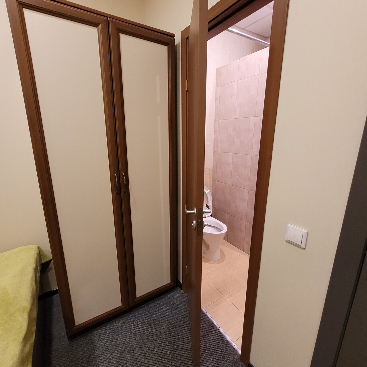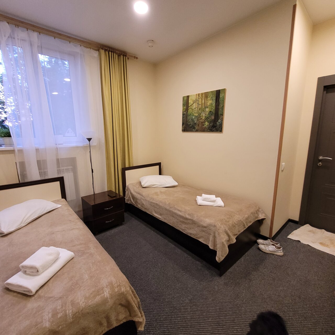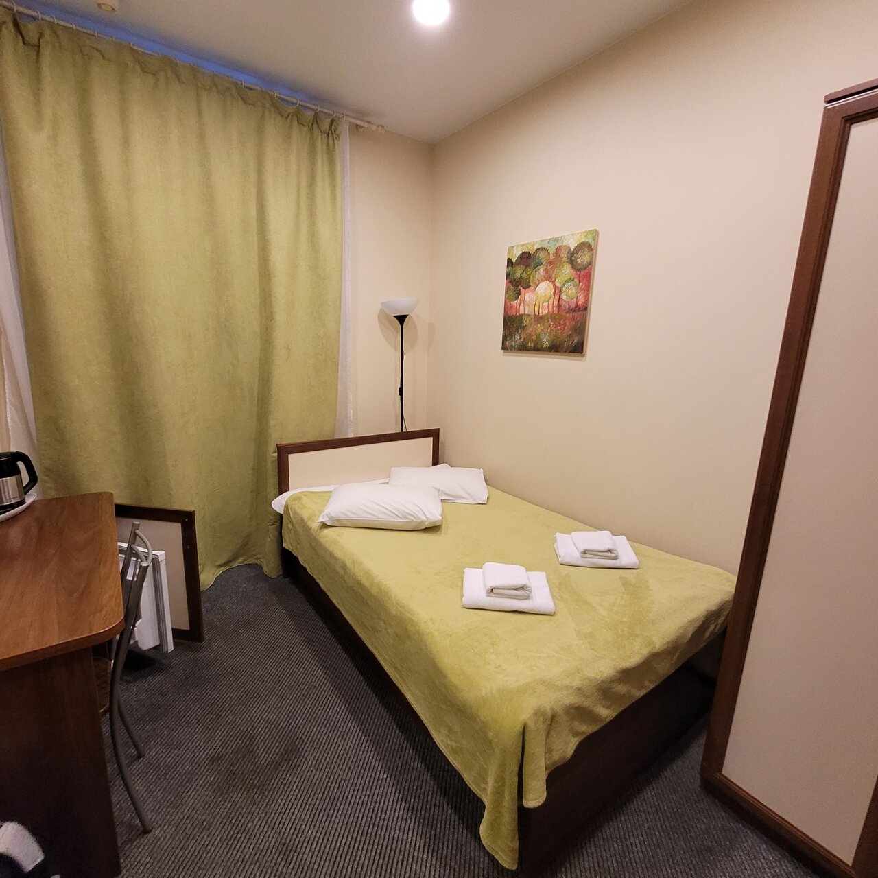Гостиница с небольшим количеством номеров, расположена на первом этаже кирпичной пятиэтажки. Внутри чисто, персонал следит хорошо. Номер забронировать можно через сайт, без проблем. Завтраков нет, учтите сразу, зато рядом есть круглосуточный сетевой магазин. Напротив входа в гостиницу есть остановка общественного транспорта. На расстоянии 5…7 минут ходьбы есть 2 кафе, где можно покушать. Минусы у гостиницы есть тоже: холодный пол, нет вентиляции в номере и потому влажно, также могут быть в соседнем номере вздохи и стоны, особенно на выходных. В целом — гостиница неплохая, просто есть особенности.