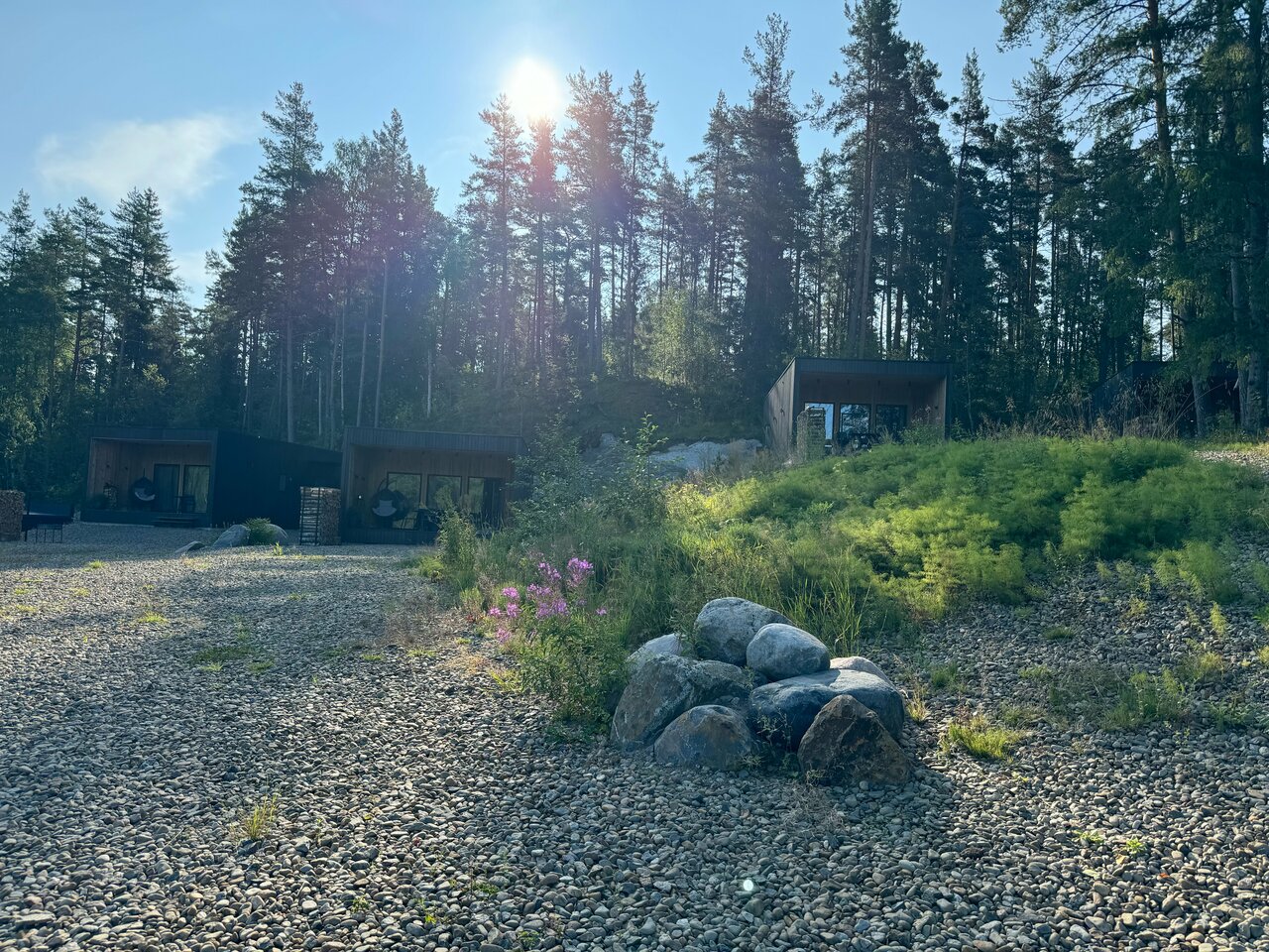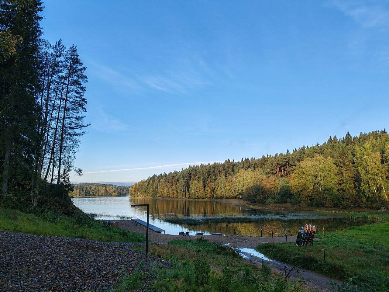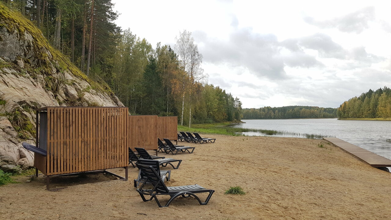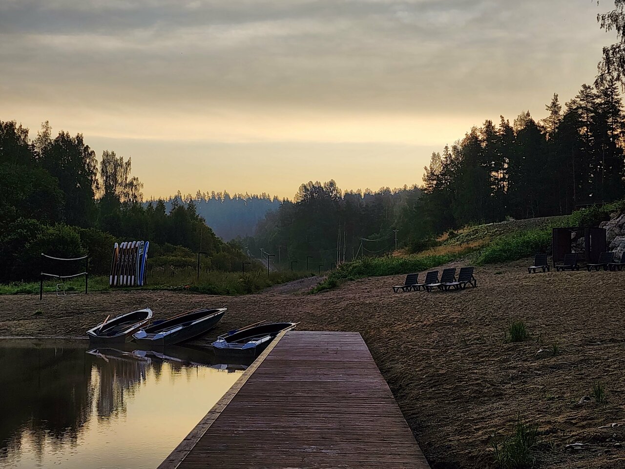 Очень классное место, видно, что сделано с душой, для Карелии — это супер уровень комфорта. Уже очень много хвалебных отзывов написано, я к ним присоединяюсь, но немножко пройдусь и по субъективным минусам: припарковаться почему-то можно было не у каждого домика, пришлось разгружаться и оставлять машину на общей парковке, возвращаясь обратно под дождем, хотя у соседей машина стояла под окном; в домиках есть почти всё необходимое, кроме подсолнечного масла; чтобы воспользоваться сапом нужно сначала обращаться к персоналу, потому что они вроде бы и стоят в свободном доступе, но некоторые из них подсдутые, ощущаешь ты это уже на воде, отплыв от берега. Формат отдыха напоминает дачный, т.е. на полном собственном обеспечении, до ближайшего супермаркета минут 25 на машине, до кафе тоже в районе получаса.