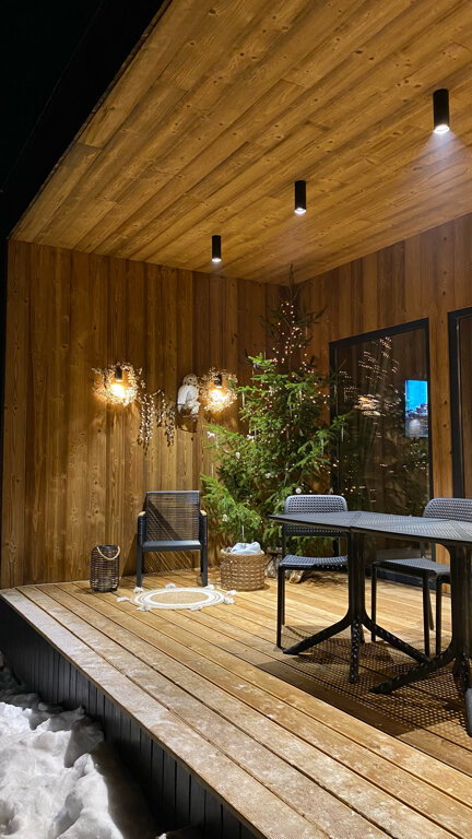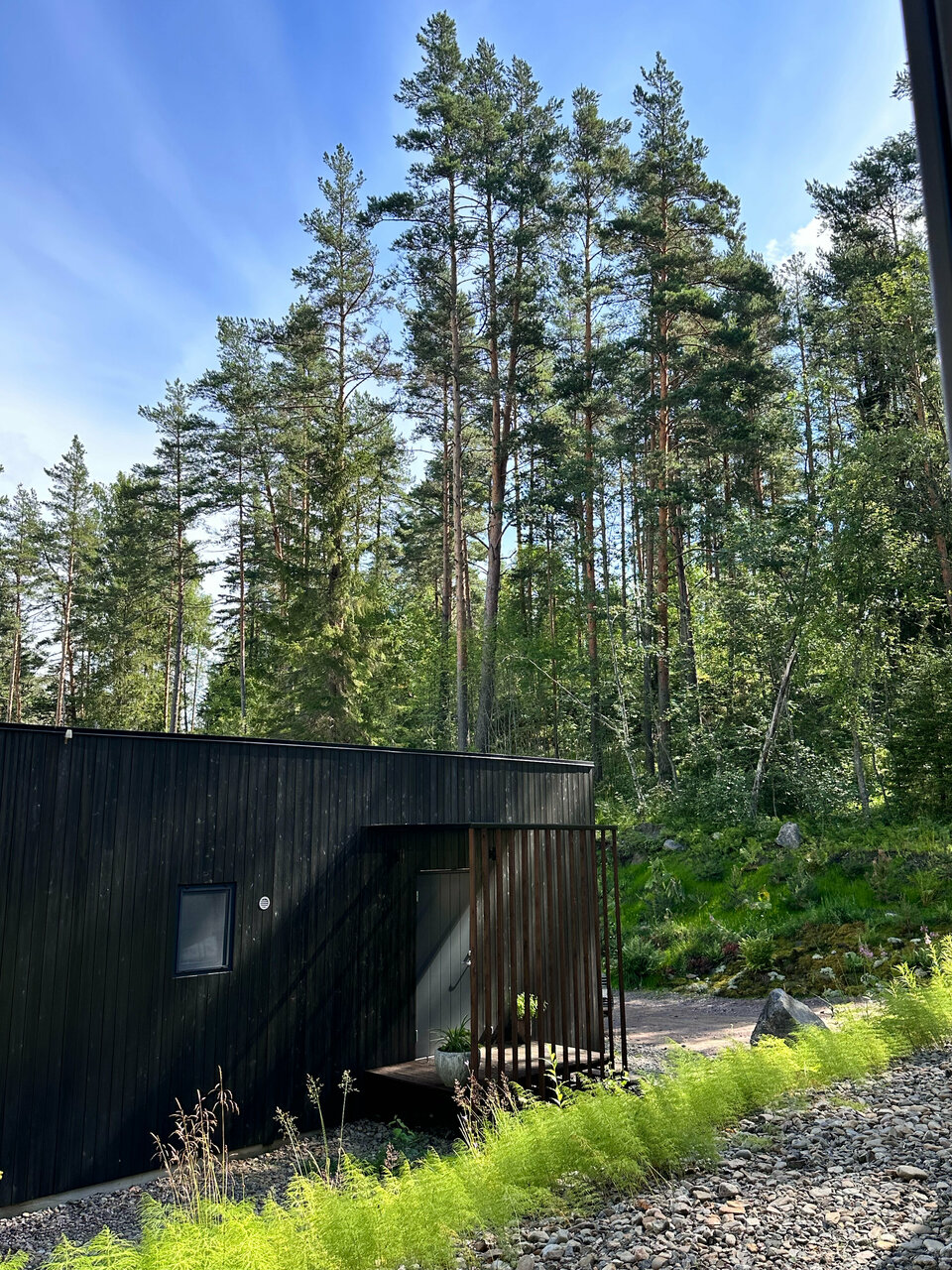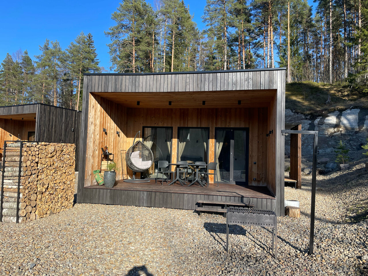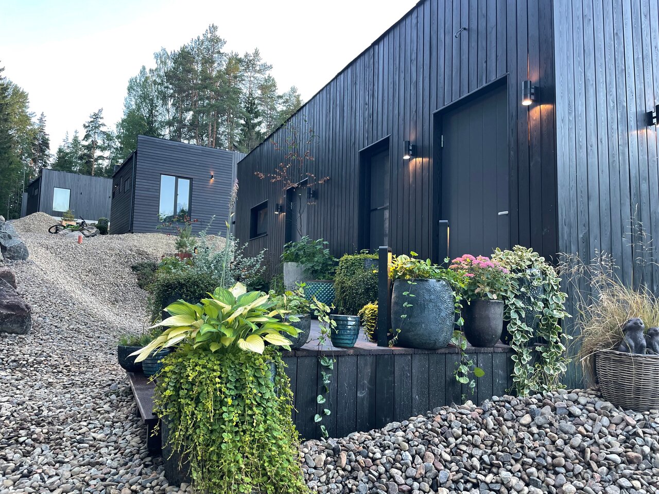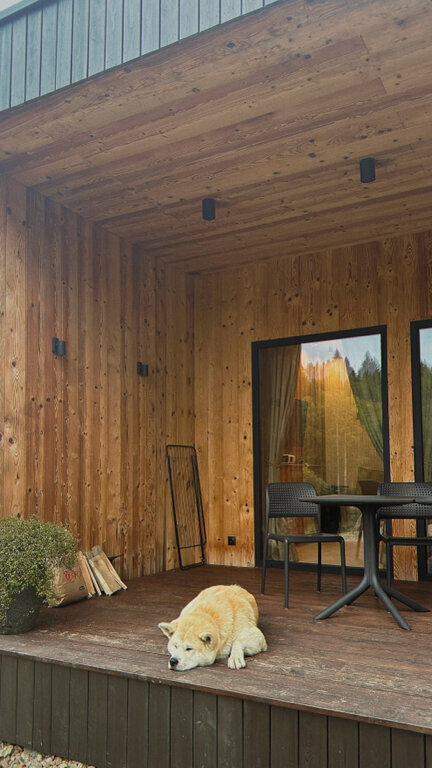 Очень классное место, видно, что сделано с душой, для Карелии — это супер уровень комфорта. Уже очень много хвалебных отзывов написано, я к ним присоединяюсь, но немножко пройдусь и по субъективным минусам: припарковаться почему-то можно было не у каждого домика, пришлось разгружаться и оставлять машину на общей парковке, возвращаясь обратно под дождем, хотя у соседей машина стояла под окном; в домиках есть почти всё необходимое, кроме подсолнечного масла; чтобы воспользоваться сапом нужно сначала обращаться к персоналу, потому что они вроде бы и стоят в свободном доступе, но некоторые из них подсдутые, ощущаешь ты это уже на воде, отплыв от берега. Формат отдыха напоминает дачный, т.е. на полном собственном обеспечении, до ближайшего супермаркета минут 25 на машине, до кафе тоже в районе получаса.
