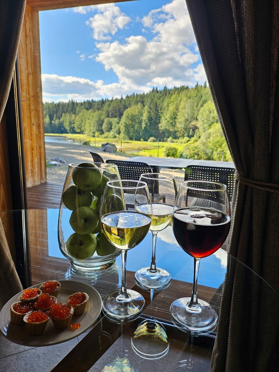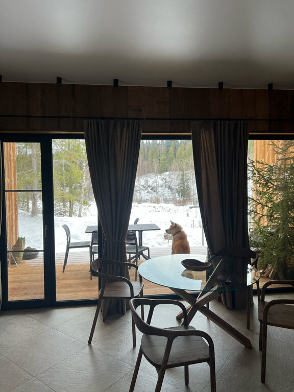 Иднальное место, если вы хотите отдохнуть от городской суеты и насладиться природой. Дома оборудованы всем необходимым, мебель, техника все новое. На территории есть небольшой пляж, пристань. Хозяева отеля очень отзывчивы, подскажут где можно гулять, где можно купить фермерские продукты. Ну и самое главное, безумно красивая природа.