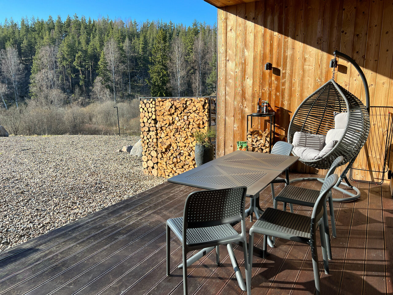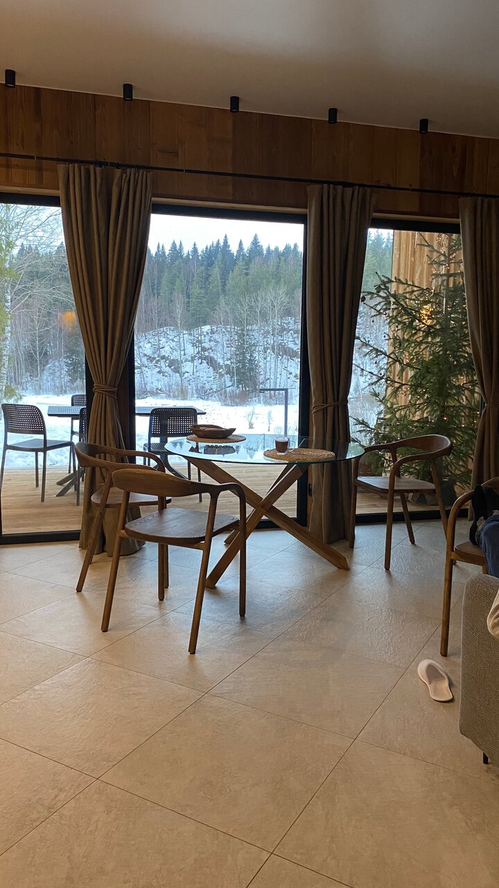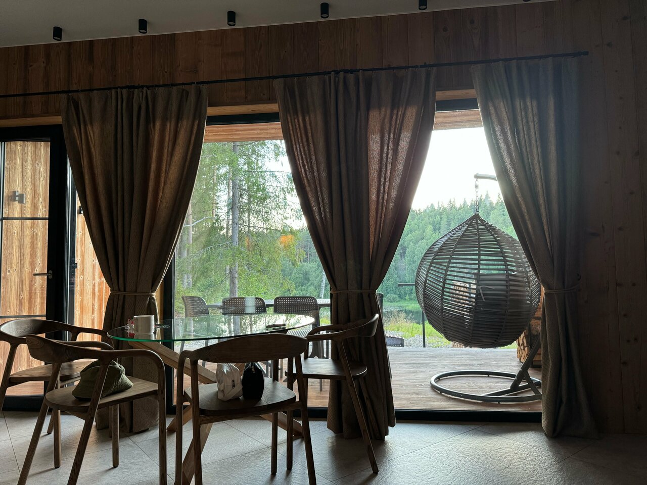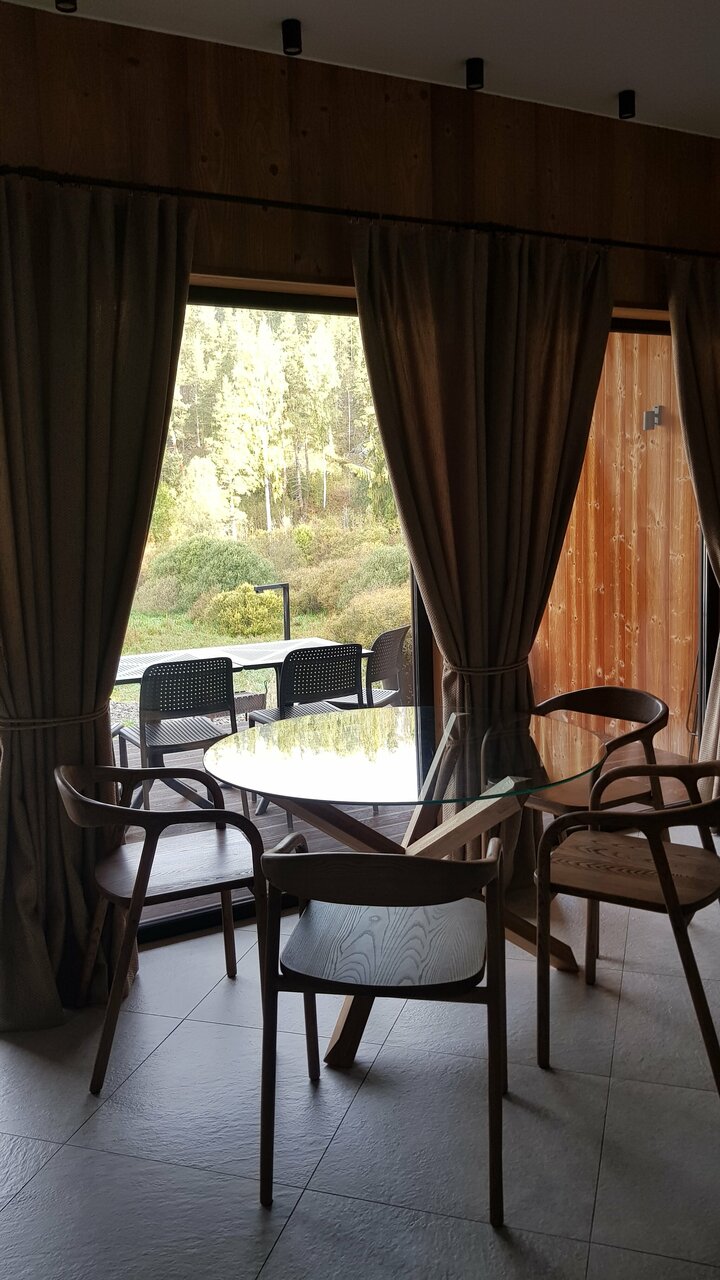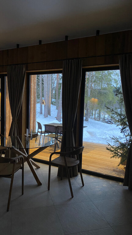 Замечательная современная атмосфера, свежий ремонт и есть все, необходимое для быта, даже какие-то неочевидные вещи вроде сушилки для обуви (рядом с озером и болотами легко промочить ноги), капсульная кофеварка с капсулами, стиральная машина и т.д. Идеальная тихая природа, облагороженная руками хозяев отеля. Рекомендую для отдыха!