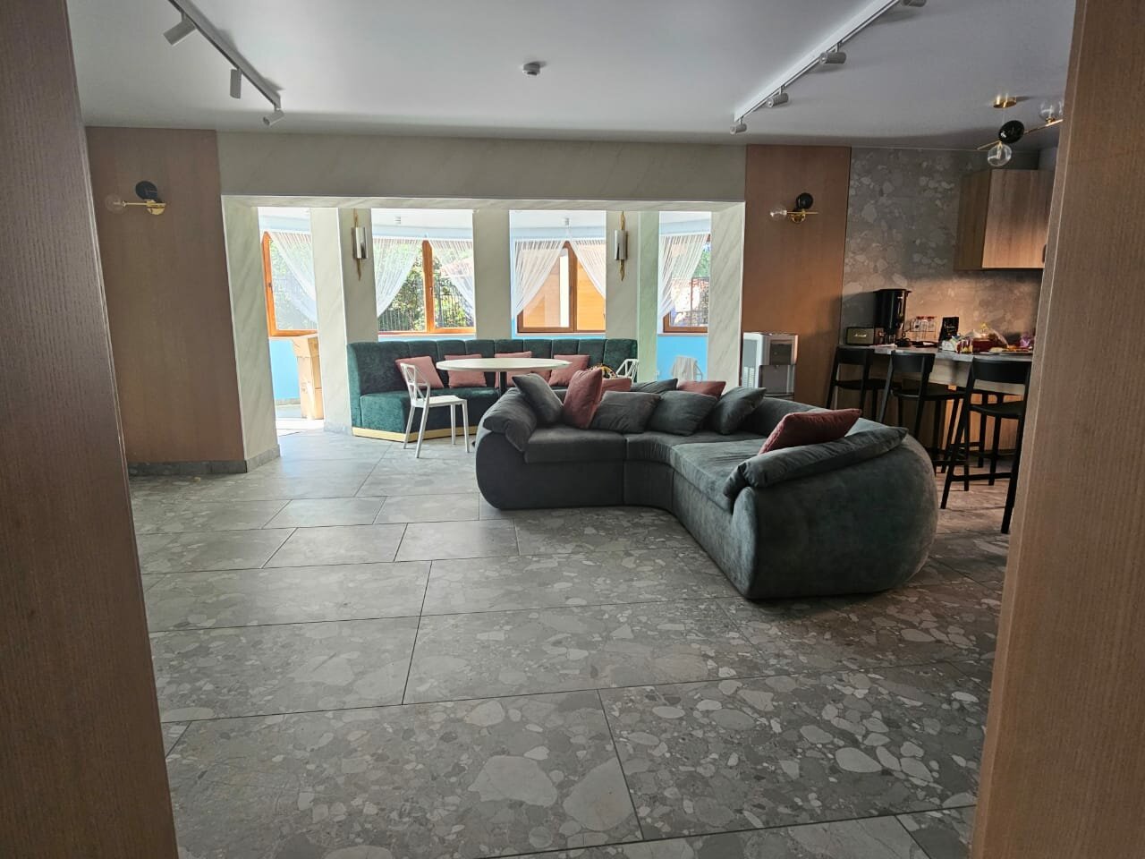 Хороший гостевой дом. Новый ремонт. Чистое белье, полотенца. Звезду снимаю за отсутствие шампуня и кондиционера. При стоимости 6к за ночь в двухместном номере это большой недостаток.