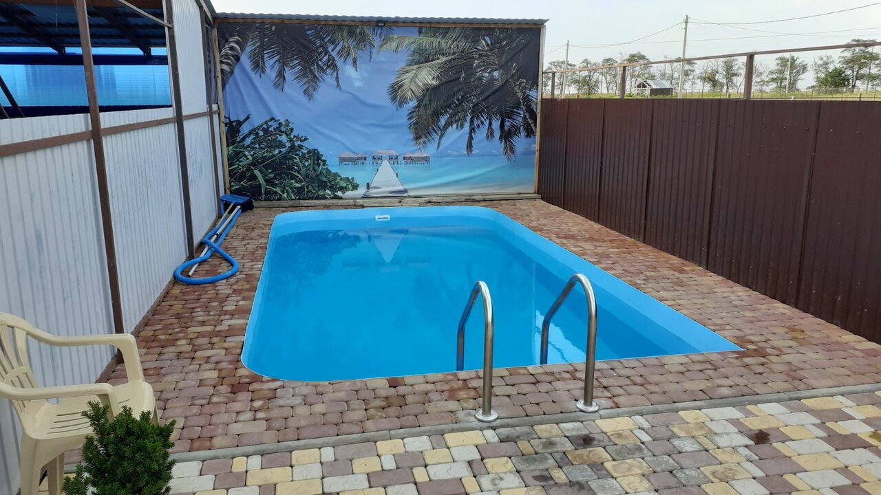 Хороший номер, бассеин у дома это очень удобно. Нам понравилось, что удалён от всех атракционов и тишина. Но к морю далековато добираться, лучше когда есть свой транспорт. Хотя можно обратиться к хозяевам гостиницы и вас отвезут и привезут в договоренное время, по весьма не высокой цене. Рядом подход к морю совсем не понравился, советую на косу ездить.
