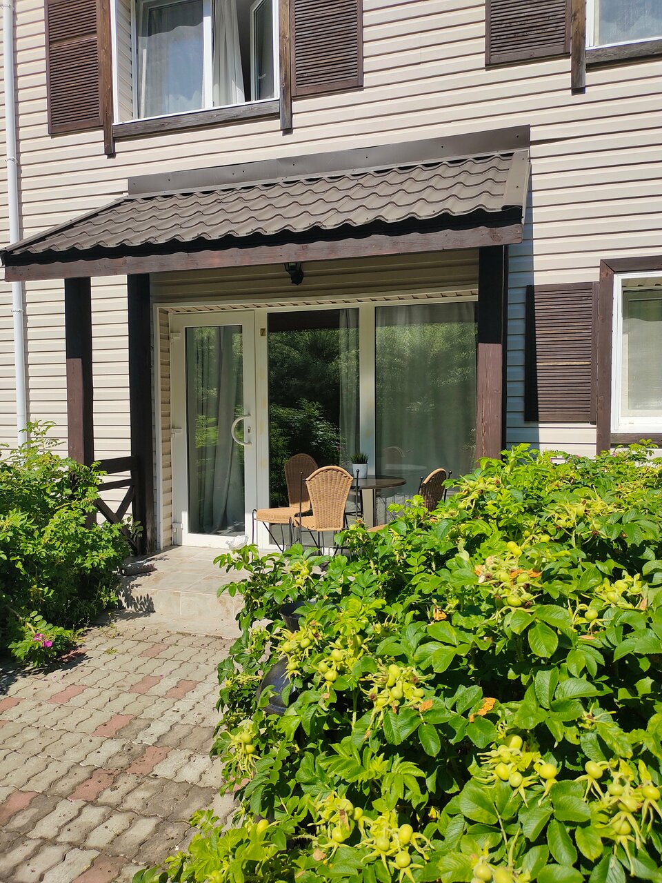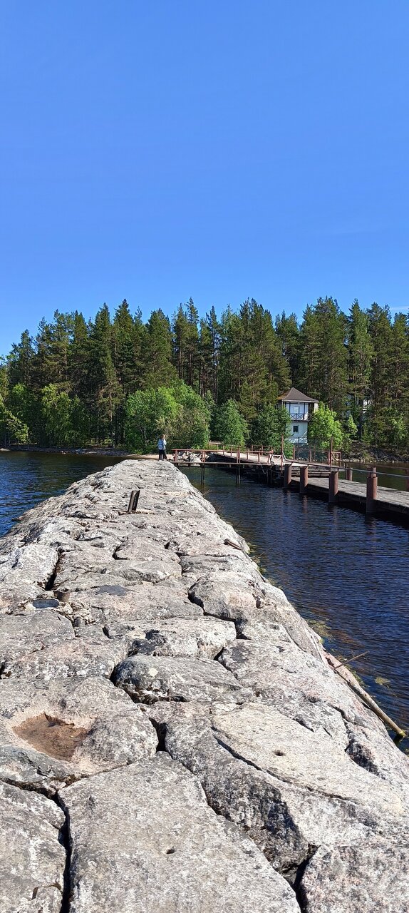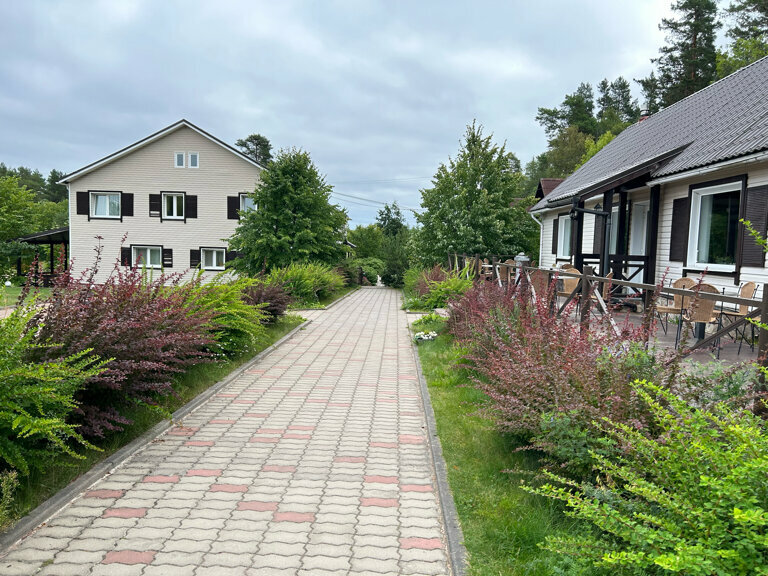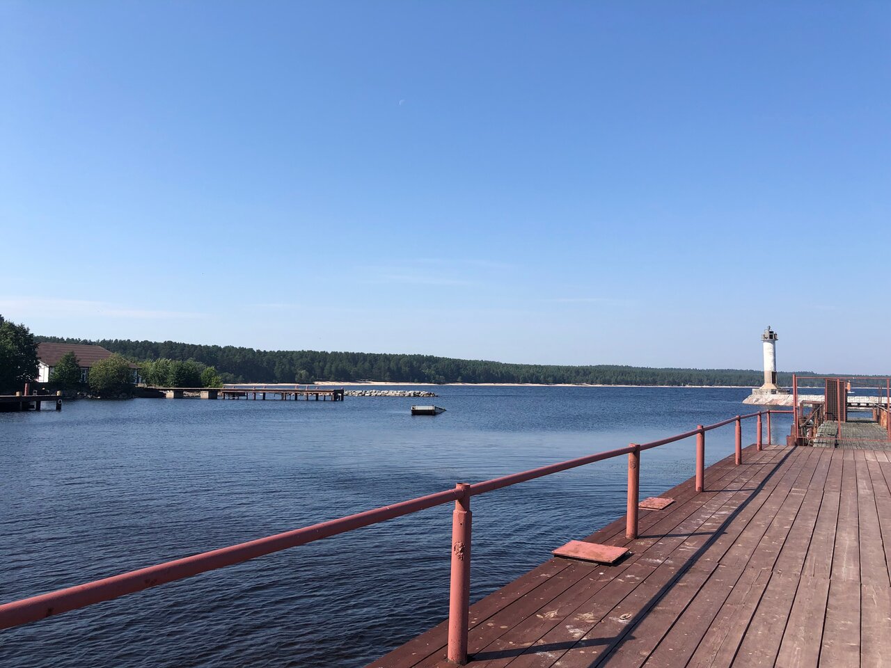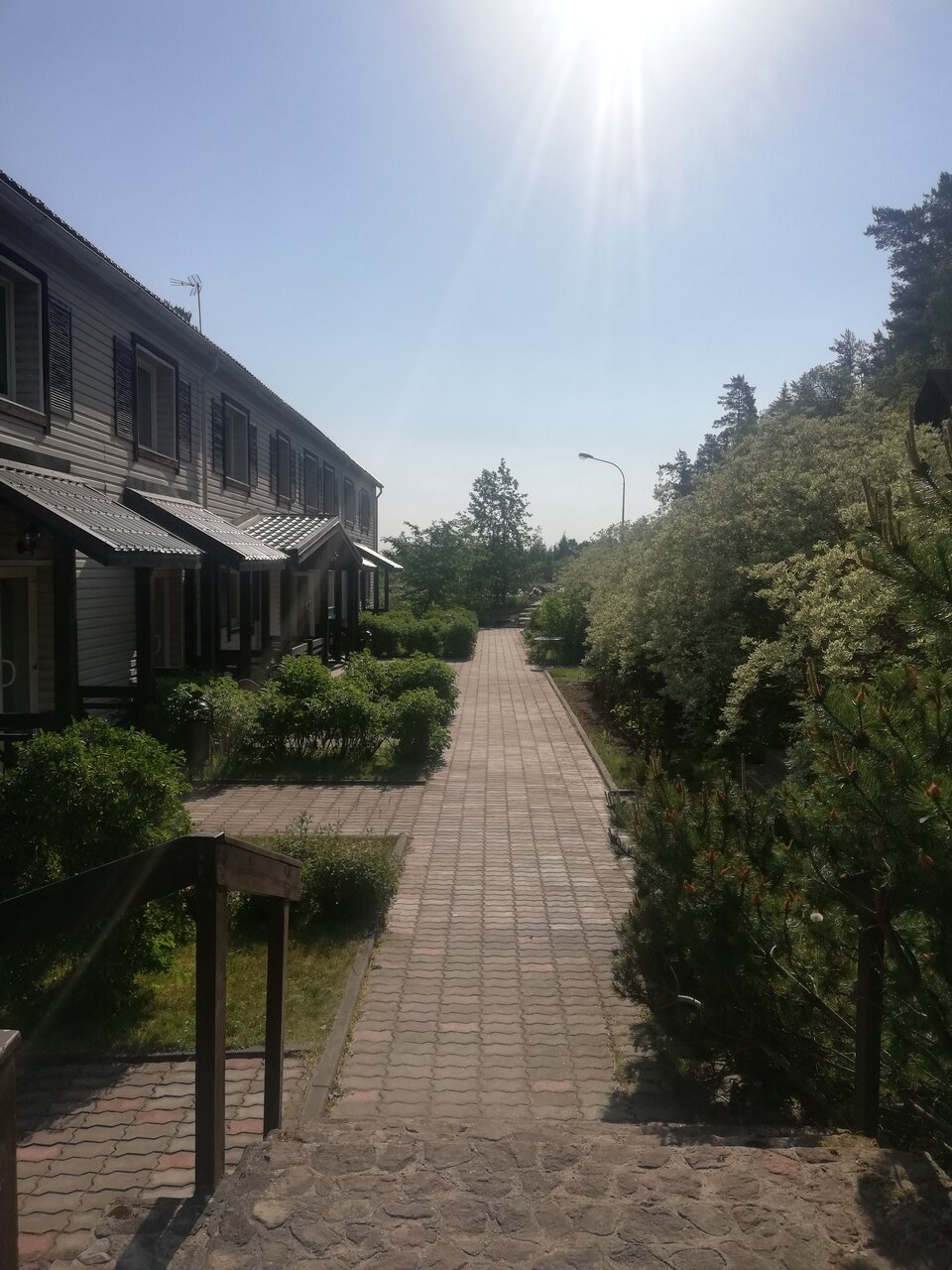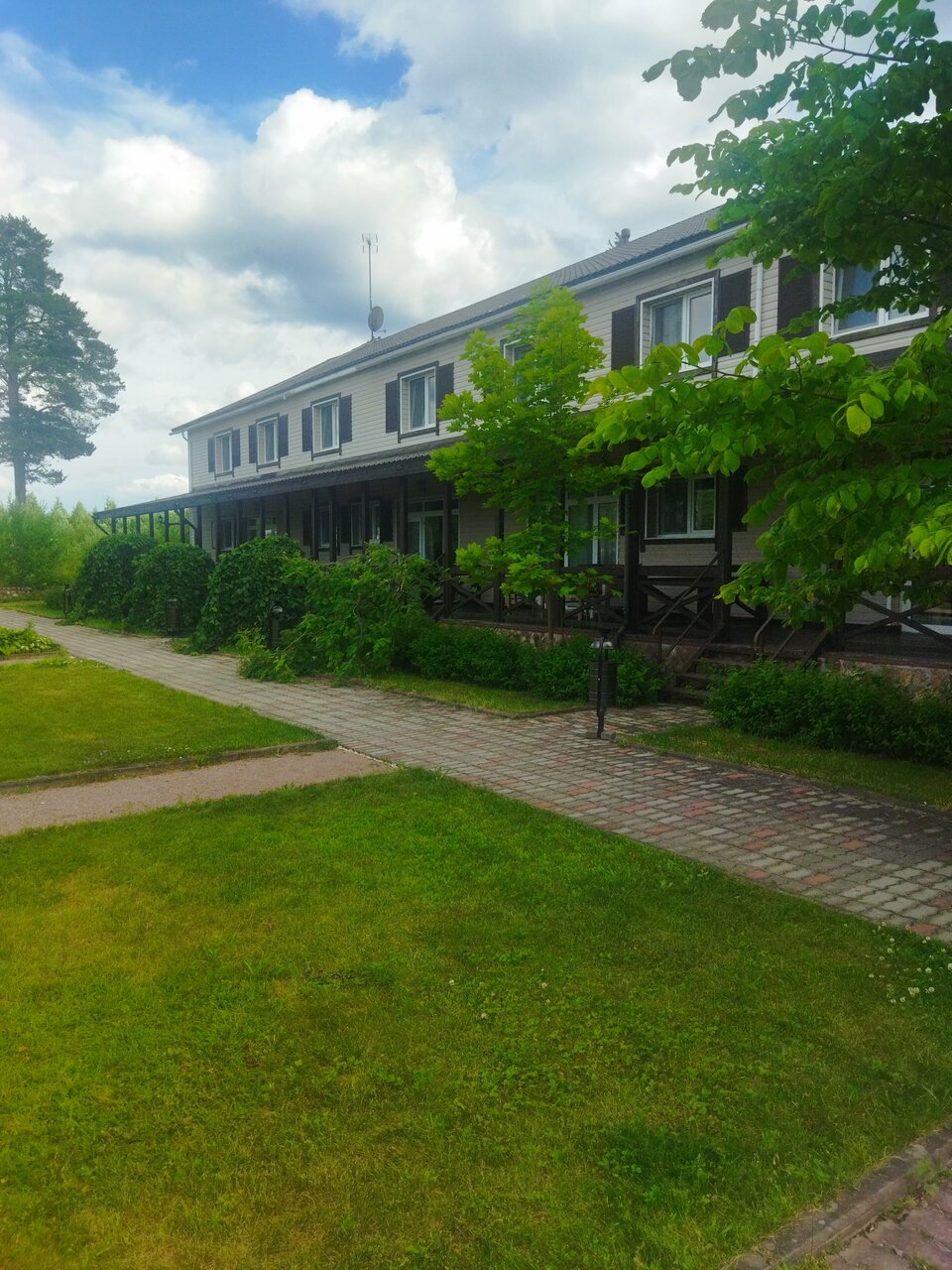 Отель находится в Ленинградской области, недалеко от города Приозерск, на берегу Ладожского озера. Территория большая, ухоженная, вокруг сосновый лес, заросли черничника, к сожалению, ягоды ещё не созрели. Некоторые домики расположены прямо в лесу. Есть песчаный пляж, лежаки, несмотря на жаркую погоду, вода в озере очень холодная. Мы занимали номер двухместный стандарт. Когда бронировали, номер был с видом на озеро, а в итоге поселили с видом на лес. Такие истории всегда не очень приятны. В нашем номере оказался разбитый с одной стороны телевизор, да и показывал всего четыре канала с помехами. В номере чисто, но какая-то проблема с полотенцами, их недостаточно. На территории есть ресторан, в котором можно заказать блюда по меню. В целом эмоции положительные.