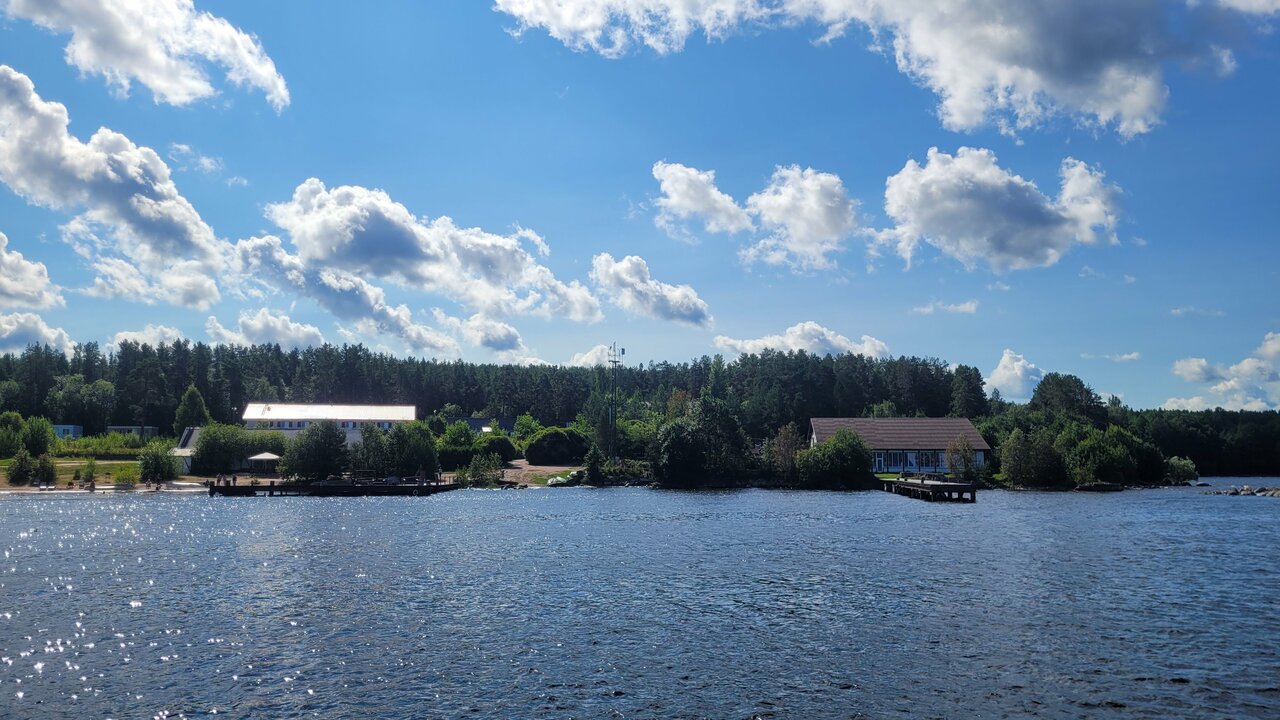 Недорогое проживание. Вкусные и недорогие завтраки. Хороший песчаный пляж, красивые виды. Номер скромный, чистый, кондиционера вроде не было, интернет нормальный. Велосипеды в прокате надо бы обновить — это ужас, а ведь есть где покататься по лесу, 10-15 км лесных дорог найти можно. Большая, хоть и не самая свежая детская площадка. Есть скромный бассейн. Рядом магазин есть в 2 км и рыбная ферма с рыбалкой и мангалами/коптильнями в 3 км. Занятий более чем на 2-3 дня тут найти сложно, но как тихое красивое место где можно не готовить и чем то занять детей — нормально. Но хотелось бы больше возможностей для досуга.