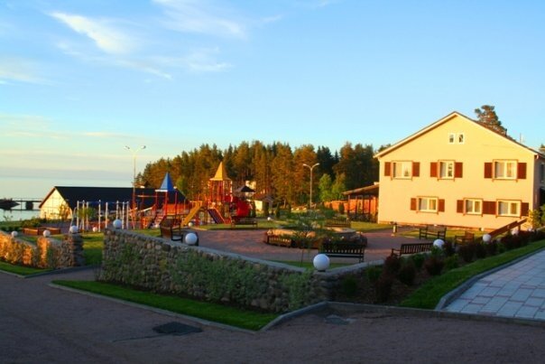 Отель расположен в очень красивом живописном месте. Прекрасный вид на Ладогу и хвойные леса. У нас было достаточно комфортное проживание в отдельном небольшом коттедже . Очень удобно,что здесь можно отдыхать с собакой. Кафе,расположенное на территории отеля с приемлемыми ценами и все достаточно вкусно. Из ощутимых минусов отеля так это то,что есть зоны ,которые пришли в упадок. Бассейн сильно разрушен. Площадки для спорта тоже имели запущенный вид. Лестницы на территории тоже неухоженные,перила шатаются.На стрижке разросшихся насаждений здесь тоже сильно экономят ,порой было непросто куда либо пройти из-за этого. Вообщем очень жаль,что такое красивое место и такое неухоженное, хотя у отеля большинство мест для проживания было забронировано. То есть это место для отдыха очень востребовано,цены на проживание не маленькие ,могли бы и найти средства для ухода за территорией отеля.