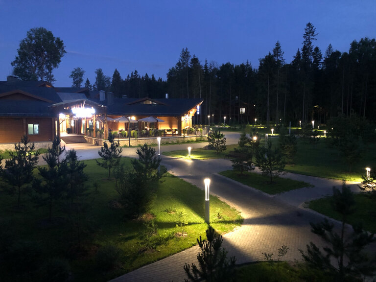 Прекрасное место! Большая ухоженная территория, несколько ресторанов на выбор, отличный бассейн 25м с гидромассажной зоной и банями, спа-центр, конюшни, детские площадки. Кататься на велосипеде одно удовольствие. Есть уединенные домики, где можно вообще себя чувствовать единственным гостем, особенно, если еду в номер заказывать. Кормят очень вкусно. На завтраке есть шампанское, как любят многие девушки)). Недалеко, практически в пешей доступности, классный стрелковый клуб. По территории гуляют олени. Белки и зайцы тоже гуляют, но этим никого не удивишь, а оленей вблищи посмотреть — редкость. Еще есть сафари-парк, где можно разных животных посмотреть.