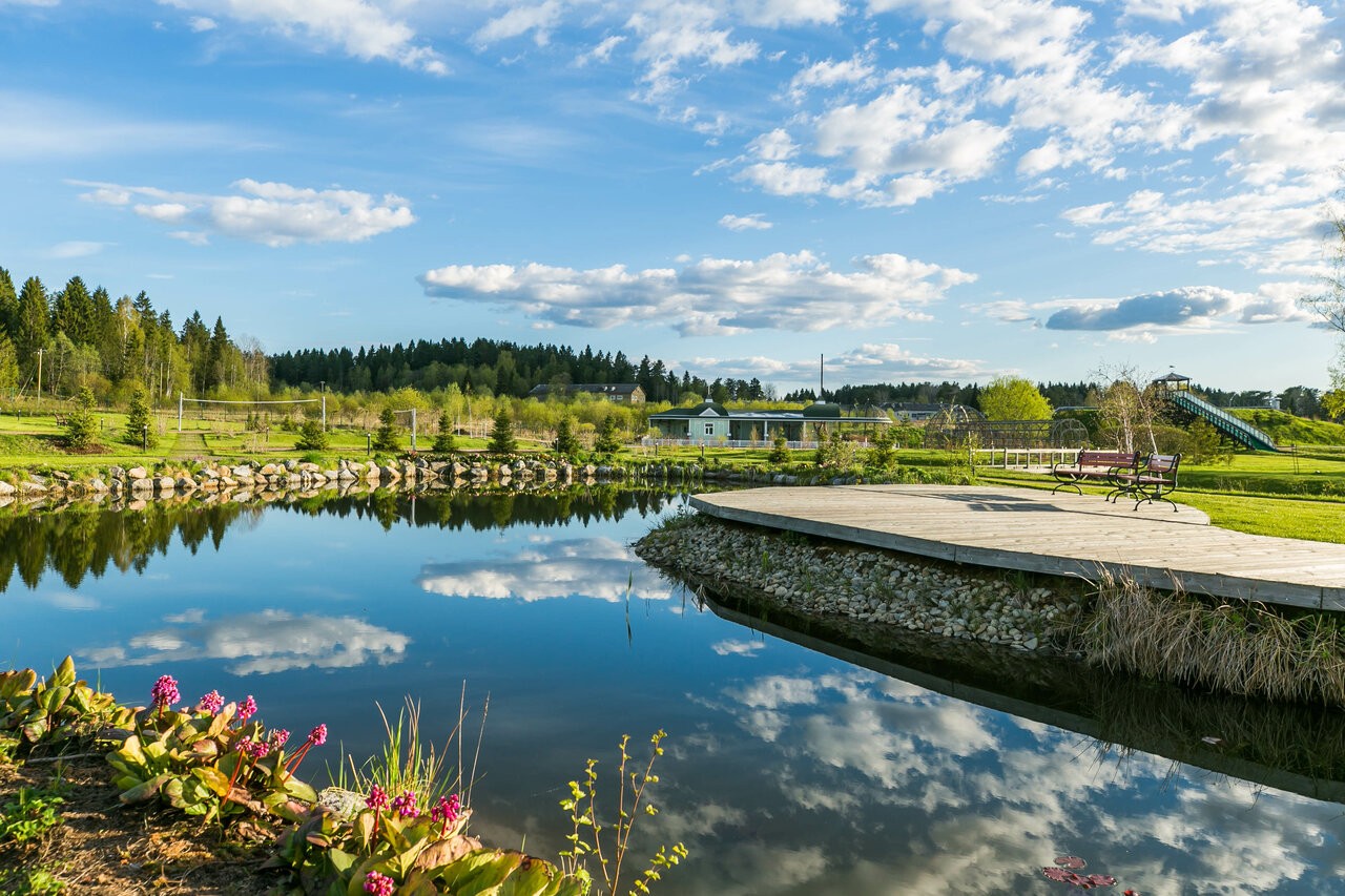 Услуги и инфраструктура: — Ресторан, кафе, летняя веранда, бар, детское меню. — SPA, баня, сауна, купальня, массаж, прокат лыж и велосипедов. — Ледовый каток, собственный песчаный пляж, рыбалка, конные прогулки. — Театр, караоке, боулинг, детский клуб, аниматоры. — Бесплатная парковка, трансферы (вкл. платные), станция для электромобилей. — Бизнес-услуги: конференц-зал, банкетный зал.