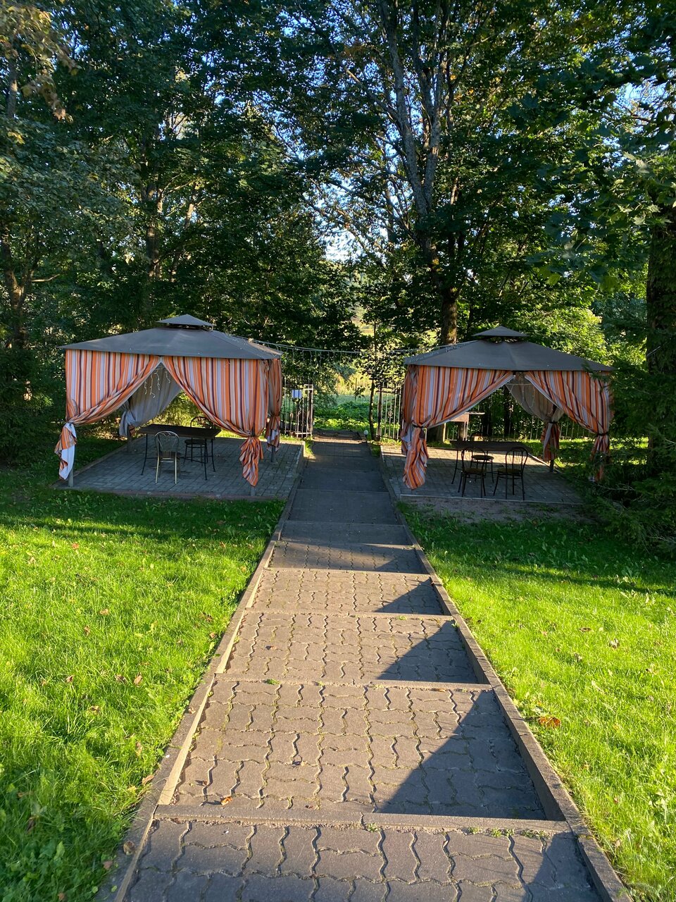 Красивое место на берегу реки Шешупе, ставлю 3 звезды за необоснованно дорогие навязанные услуги в виде аренды мангала по цене 1300/ЧАС! Альтернативы нет. Посидеть за столиком у мангала- тоже почасовая оплата. Это явный перебор. Плюс работа персонала в плане организации отдыха гостей нулевая. В дни нашего отдыха был банкет, он закончился в 23, но в час ночи соседи по бунгало принесли колонку и врубили ее на полную мощность- спать было невозможно, персонал ничего не видел и не слышал, танцы и пляски закончились в 3 часа ночи, как несложно догадаться- не выспался из нашей семьи никто. Цена на проживание доступная, остальной ценник на все завышен непонятно с какой радости