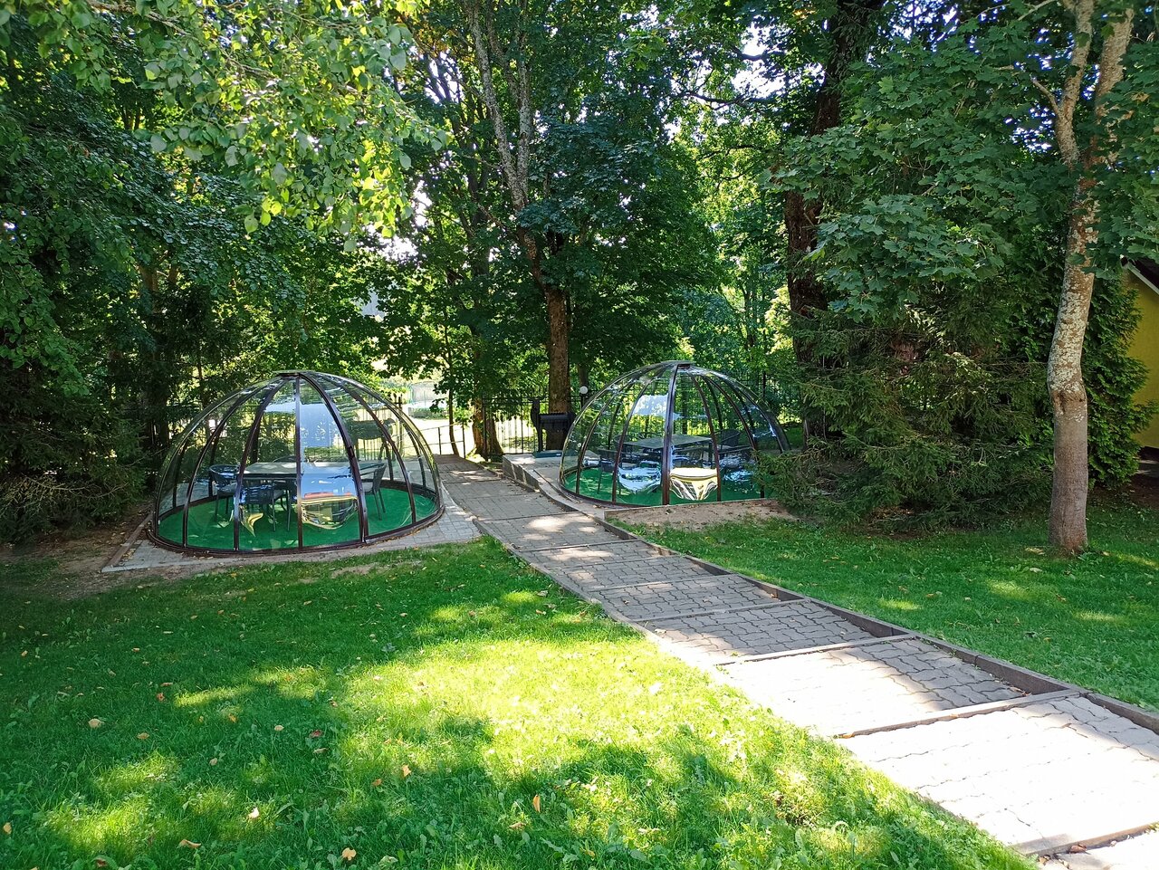 Не большой загородный отель на живописном берегу реки Шешупе. Свежий воздух. Тишина. Хорошие, уютные номера в основном корпусе и в бунгало. Есть всё необходимое для комфортного и приятного отдыха. Хорошая просторная баня на дровах с бассейном. В бассейне панорамные окна с видом на реку и лес. Вместительный ресторан. Хорошая кухня. Приветливый персонал. Разумные цены. Есть площадки барбекю. Места для различных активностей и детская площадка. В летнее время на берегу реки устанавливают лежаки. На реке пантон. Можно купаться и ловить рыбу.