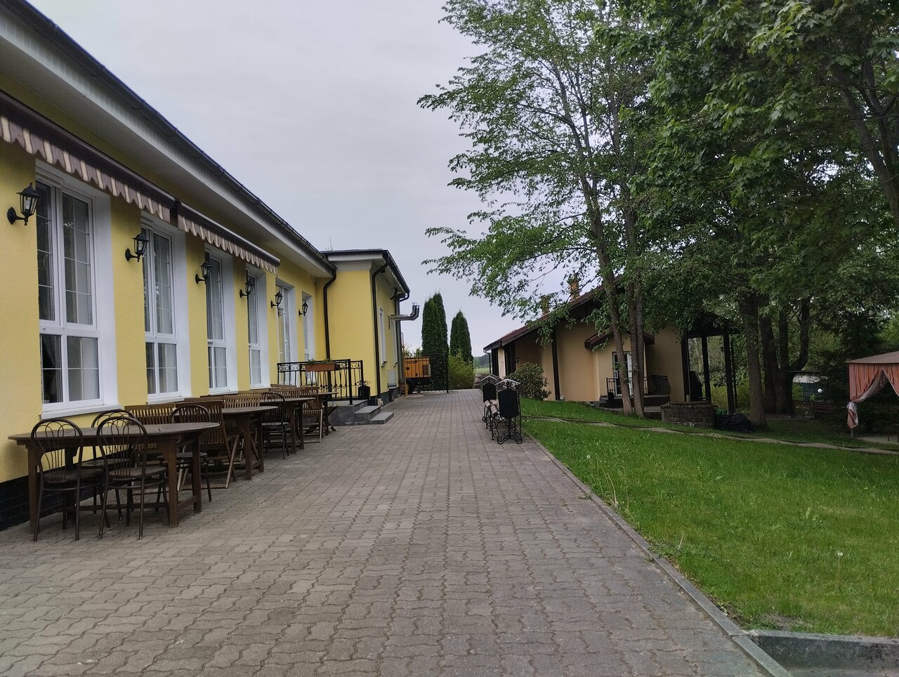 Тихое место, вдали от городской суеты. Чистый отель, аккуратная территория и громко обсуждающая внешнеполитические события охрана
