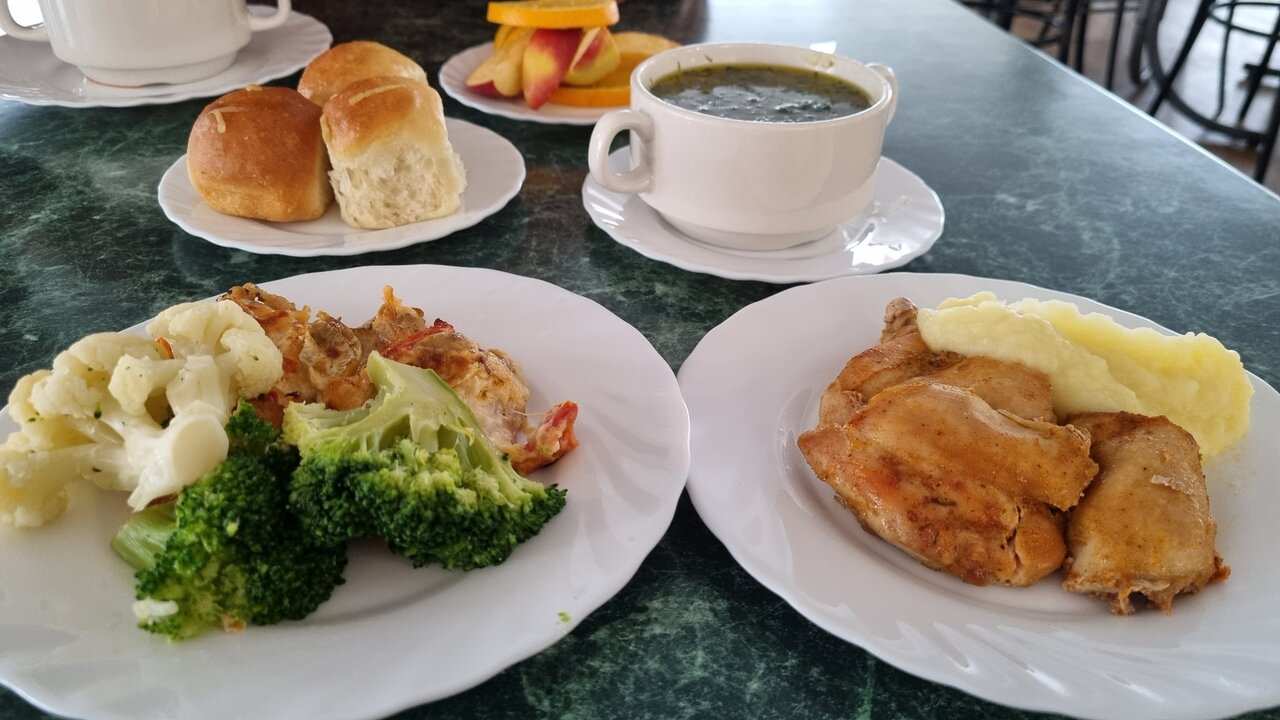 еда более менее нормальная но все остальное просто ужас в номерах стены обхарканые, полотенца грязные ,невозможно помыться в душе, постельное бельё грязное, и пол ОЧЕНЬ грязный а когда дают фрукты их разбирают гимнастки у нас в люстре вообще крендели природа красивая , а так пока 2 звезды