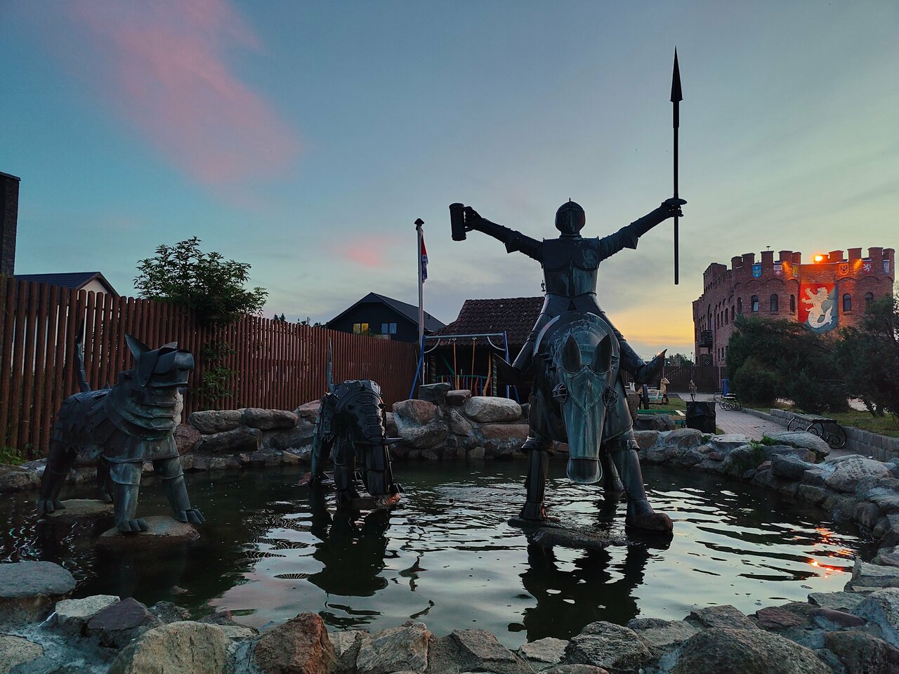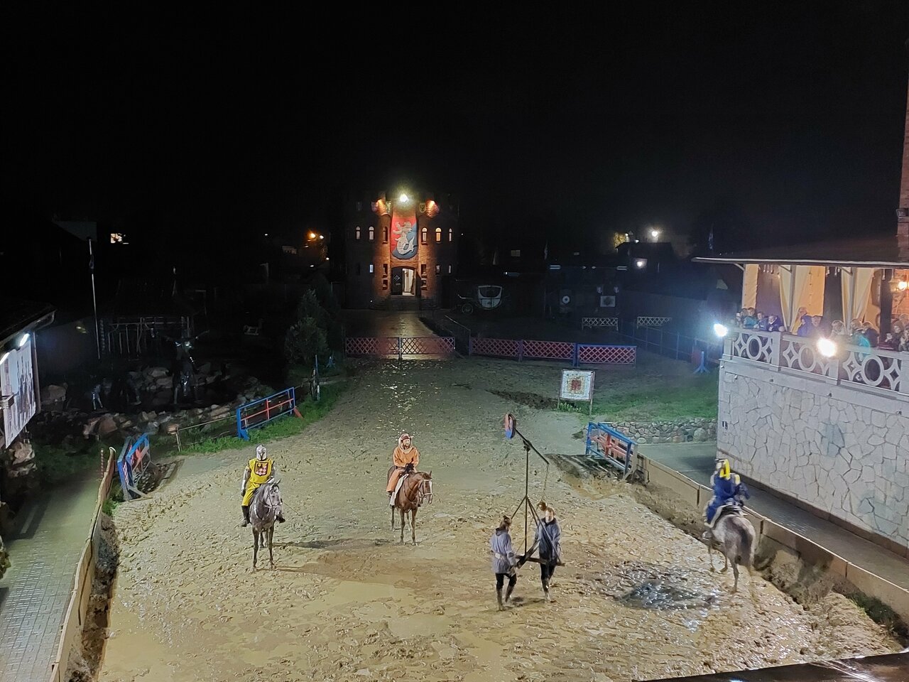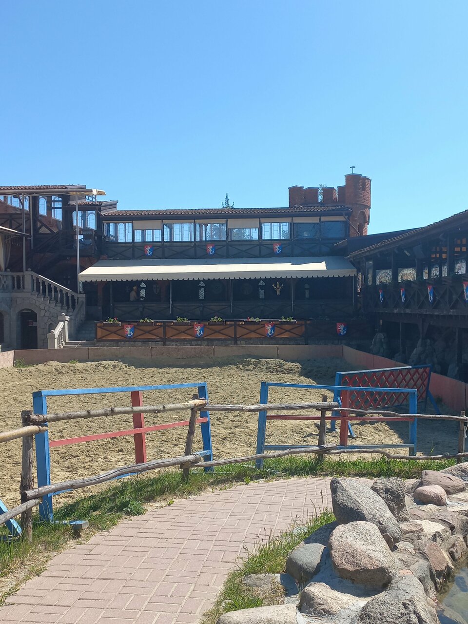 - Ламповая атмосфера.; Отличное место, интересная локация.; Крутая атрибутика замка.; Внешний и внутренний вид замка впечатляет (средневековый стиль, рыцари, мечи).; Возможность покататься на лошадях.