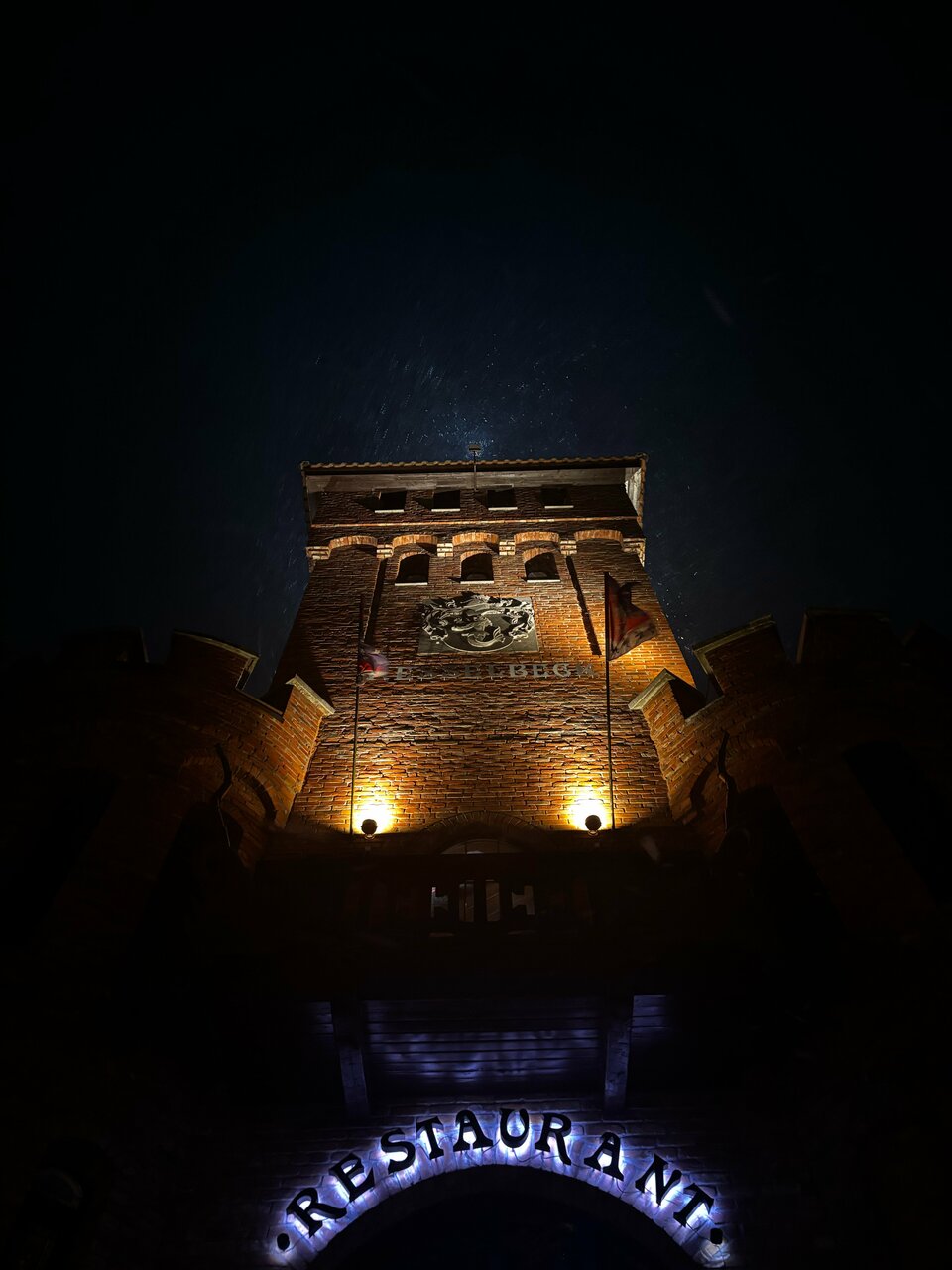 Отличный замок, крутая атрибутика. Остались очень хорошие воспоминания. Единственный минус обслуживающий персонал в ресторане. Могут забыть про заказ, а за напитками лучше подойти самим. Но красота замка всё вывезла