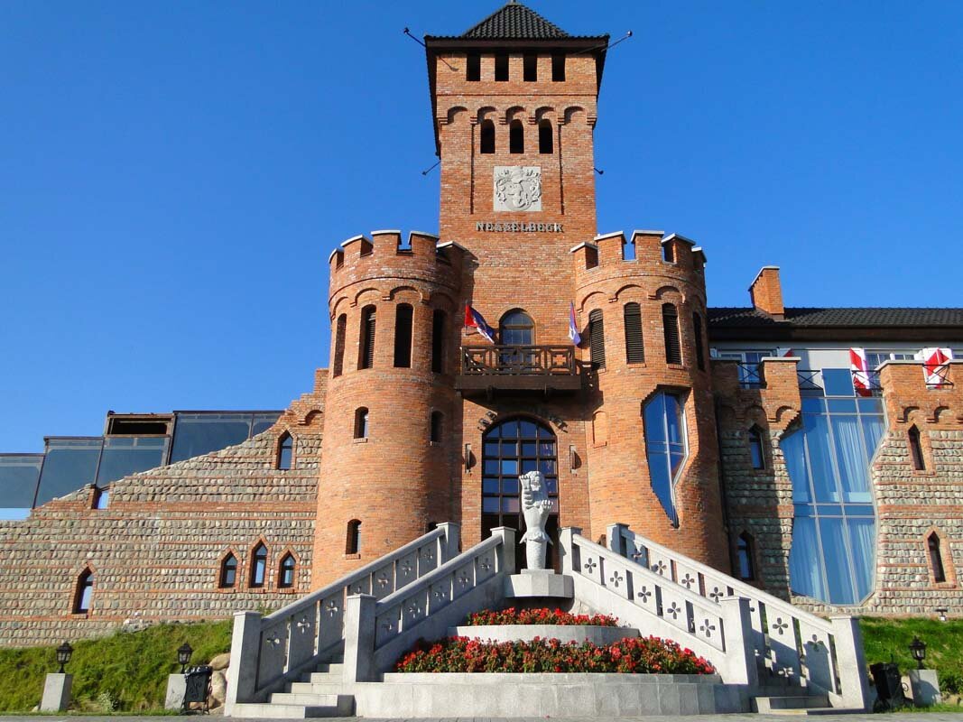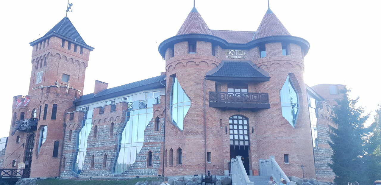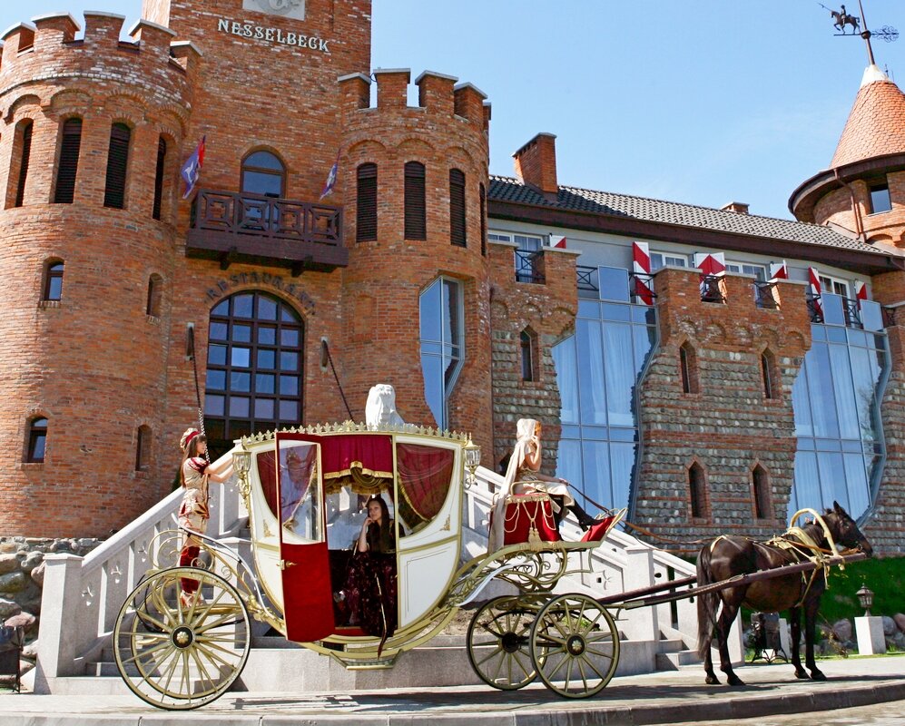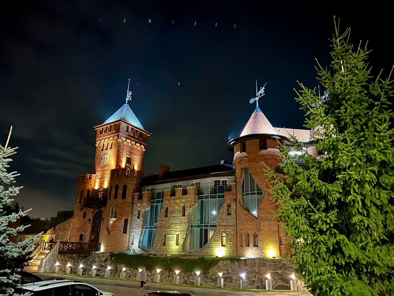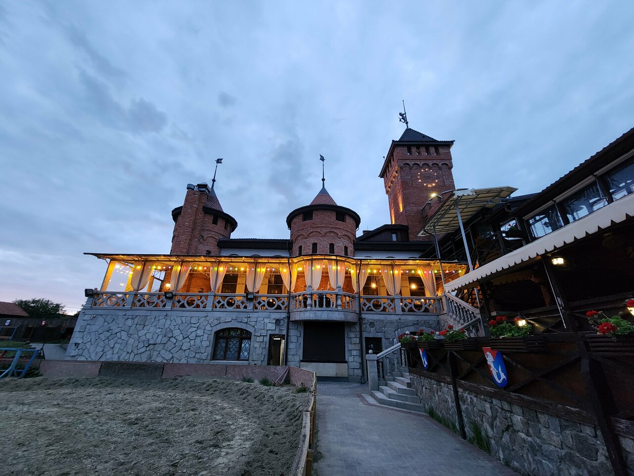 Афигительный Отель,,, проезжая и увидев обалденно удивились такому замку,,, внешний вид средневекового замка,,, внутри тоже необычно,, жене очень понравилось не хотелось уезжать интерьер средневекового замка с рыцарями , мечами и щитами и другими фишками,,, поезжайте сами увидите и не пожалеете,,, . Сергей
