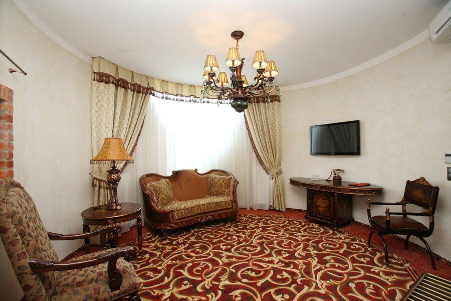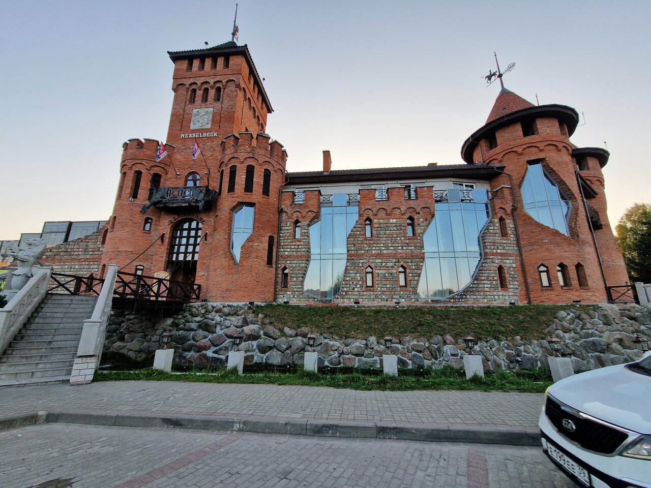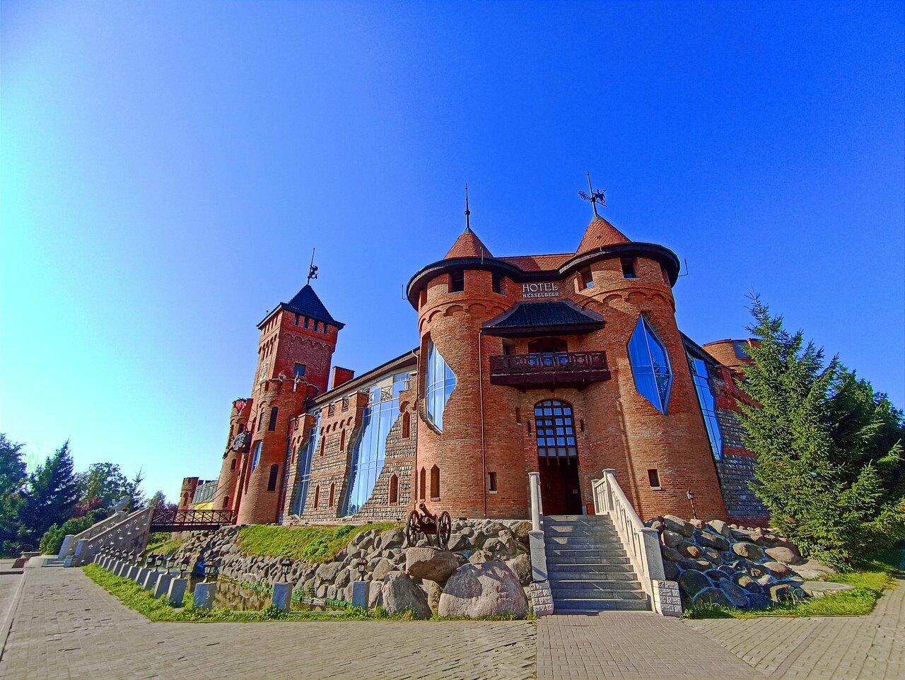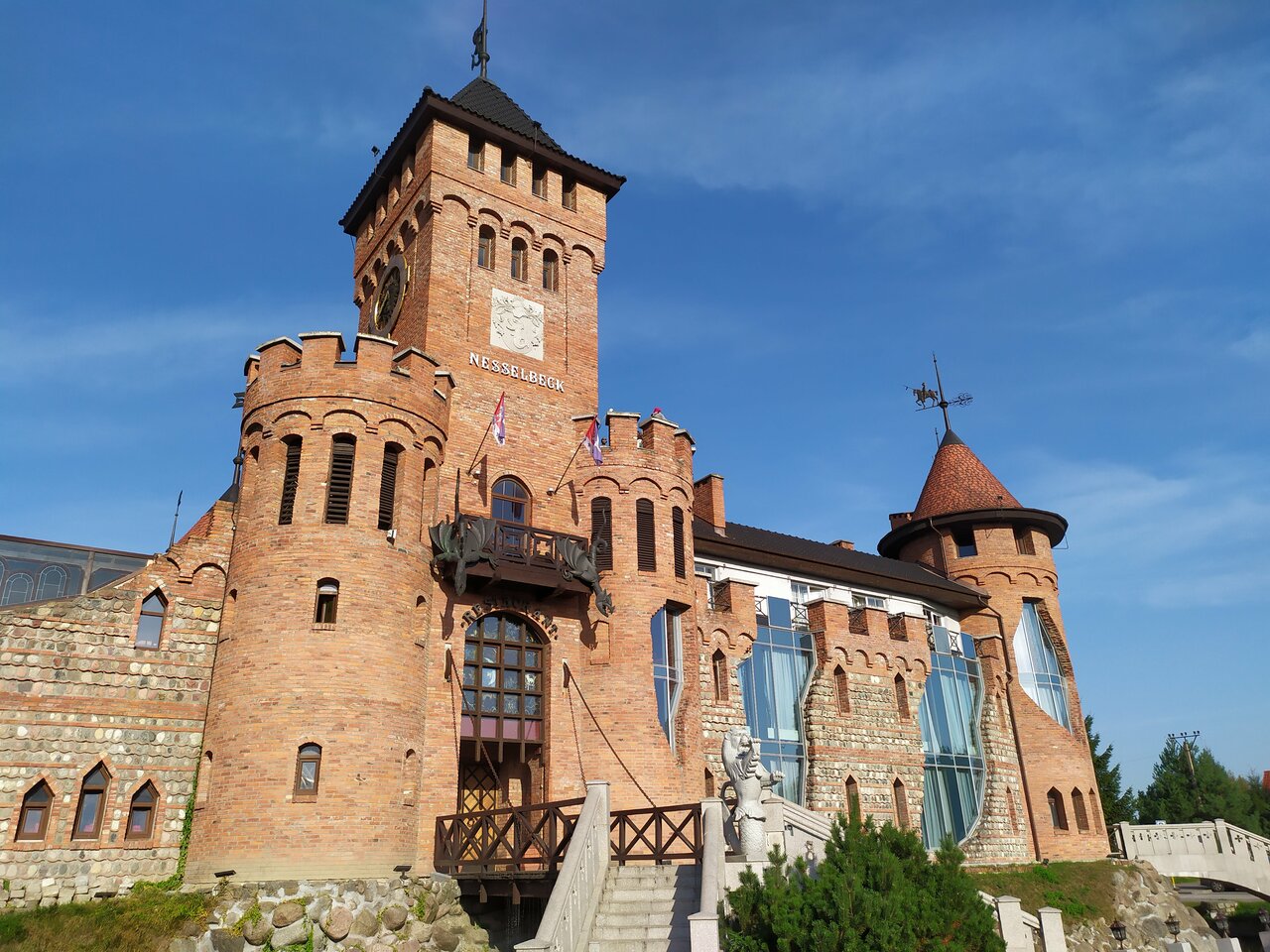 Афигительный Отель,,, проезжая и увидев обалденно удивились такому замку,,, внешний вид средневекового замка,,, внутри тоже необычно,, жене очень понравилось не хотелось уезжать интерьер средневекового замка с рыцарями , мечами и щитами и другими фишками,,, поезжайте сами увидите и не пожалеете,,, . Сергей