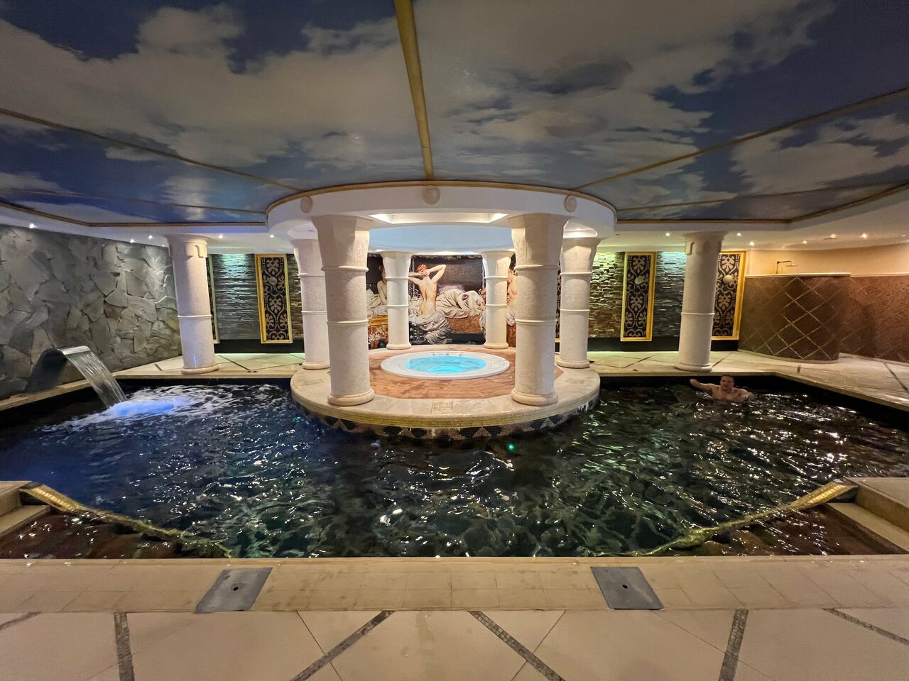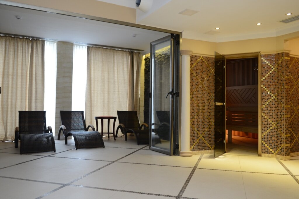 В инфраструктуру входят крытый подогреваемый бассейн (платно), SPA, хаммам, сауна (платно), массаж, терраса и летняя веранда. Для детей предусмотрены игровая комната, детская площадка, кроватки и меню.