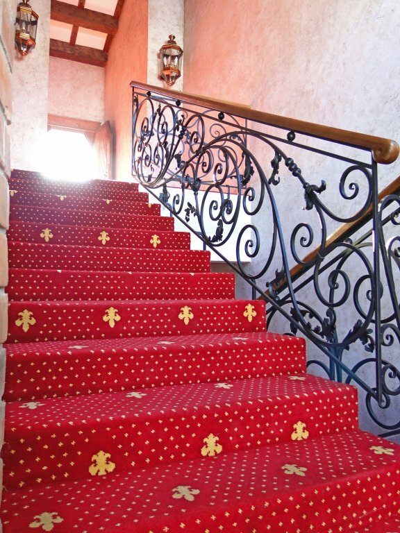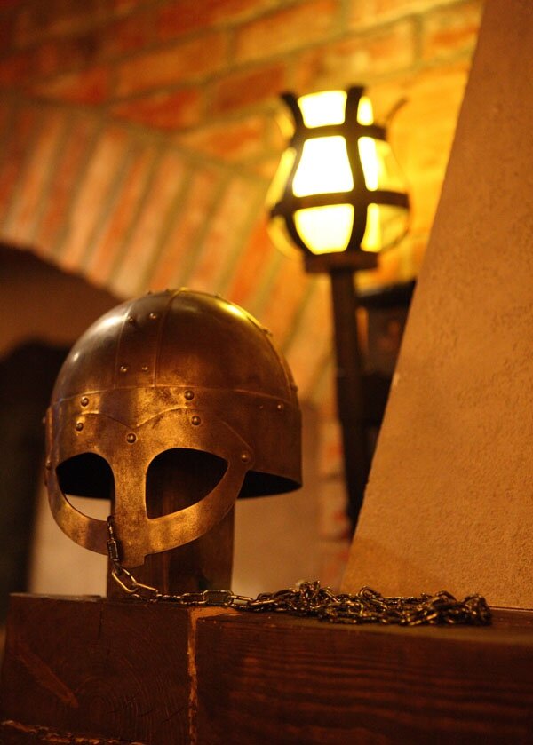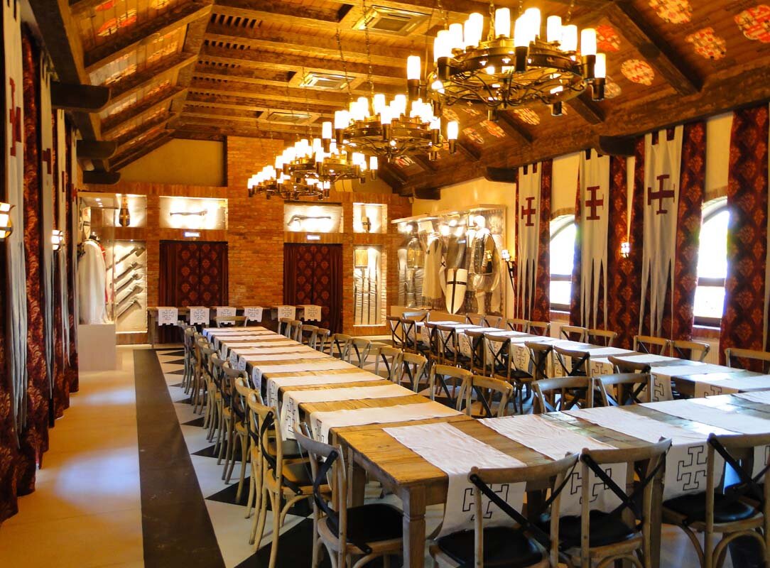 - Внешний и внутренний вид замка впечатляет (средневековый стиль, рыцари, мечи).
