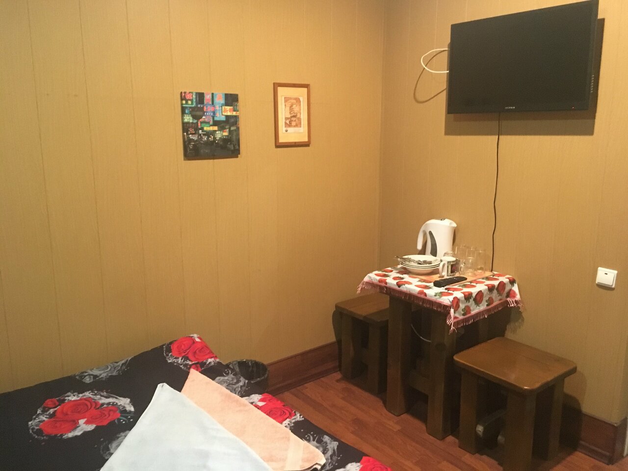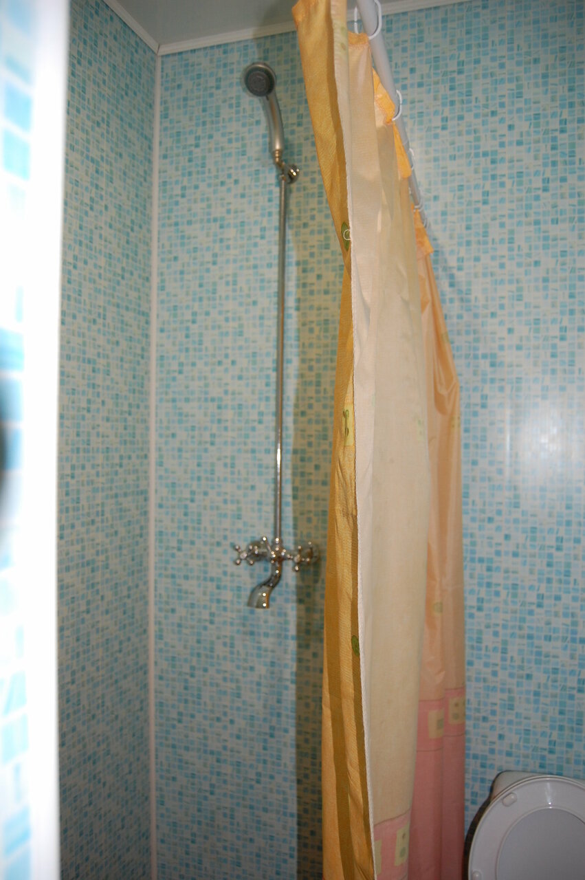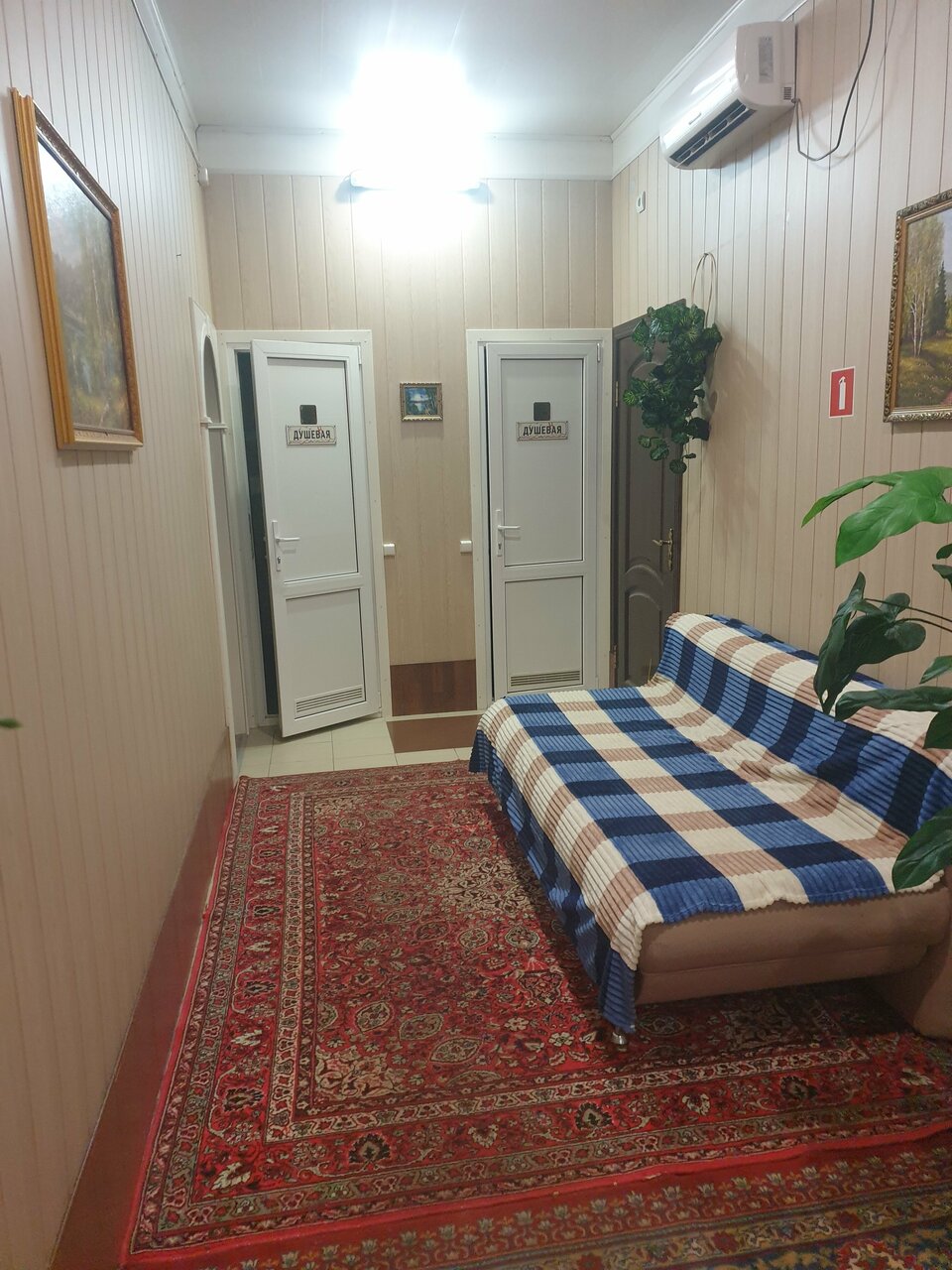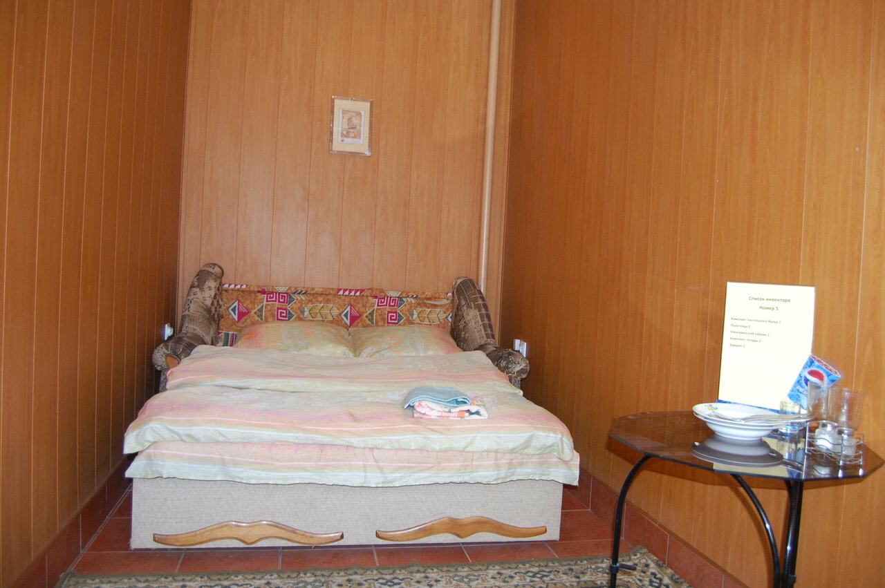 Забронировали по телефону номер. Сказали, что в нем есть кондиционер и свой санузел с душем, 2х комнатный. Озвучили стоимость — 3000р. Попросили предоплату 1000р. Т. к. мы были в дороге, сказали что не сможем этого сделать. По приезду нам сказали, что номера с кондиционерами разобрали и предложили номер за 4000 р. Как оказалось он 2х комнатный с кондиционером и своим санузлом. Спустя некоторое время, нам стало понятно, что мы одни в этой гостинице (Р. S. на ключнике у администратора висели все ключи от номеров, во дворе на парковке стояло 2 машины, одна из которых принадлежала нам,а вторая — администрации отеля). Обстановка номера — 90-е года (не считая кондиционера и телевизора). Душ двойной совмещённый, разделяет их шторка, напор воды был хороший (мы же одни были отеле) . Постельное белье — синтетика (а в дороге все таки хочется выспаться). Так что об этом отеле остались только негативные впечатления.