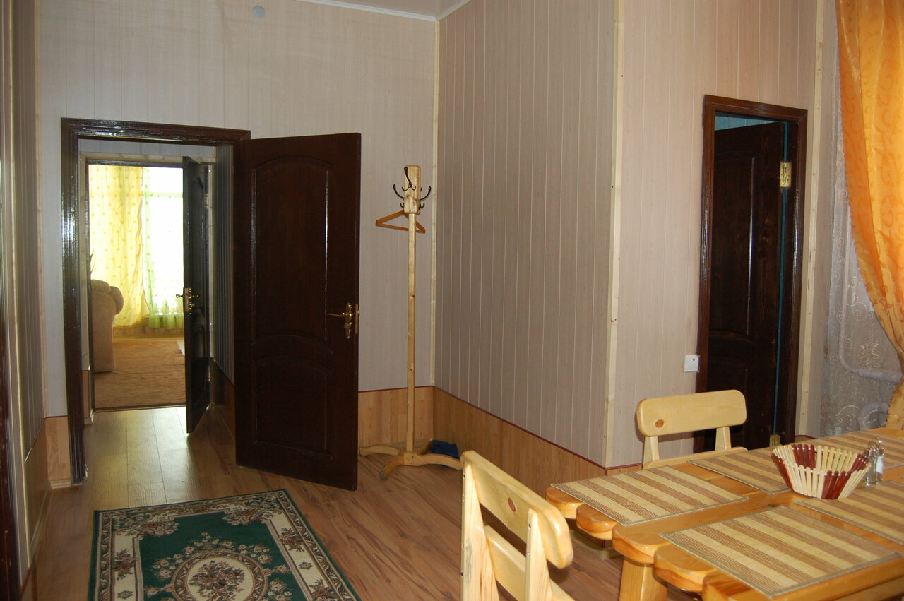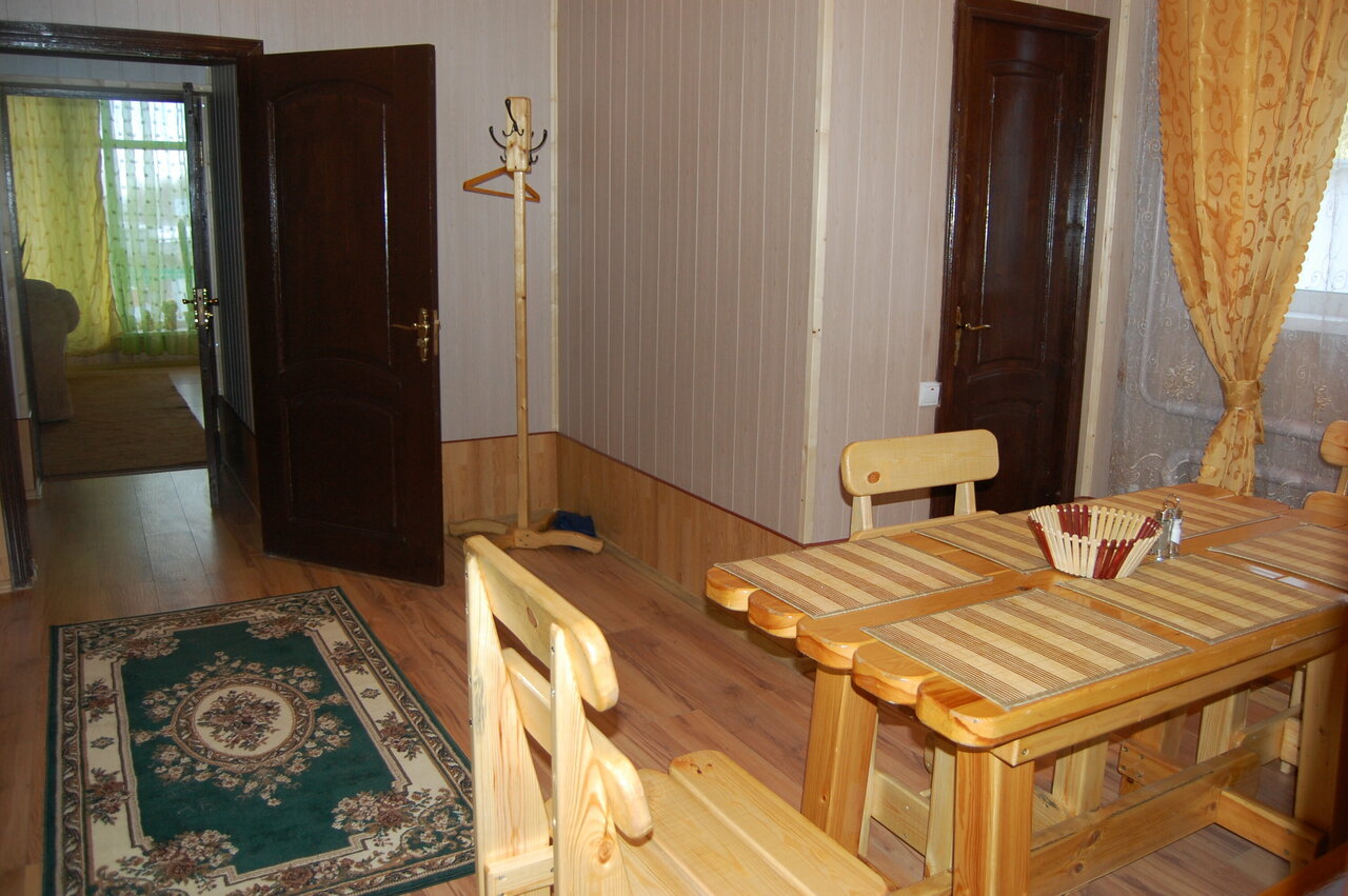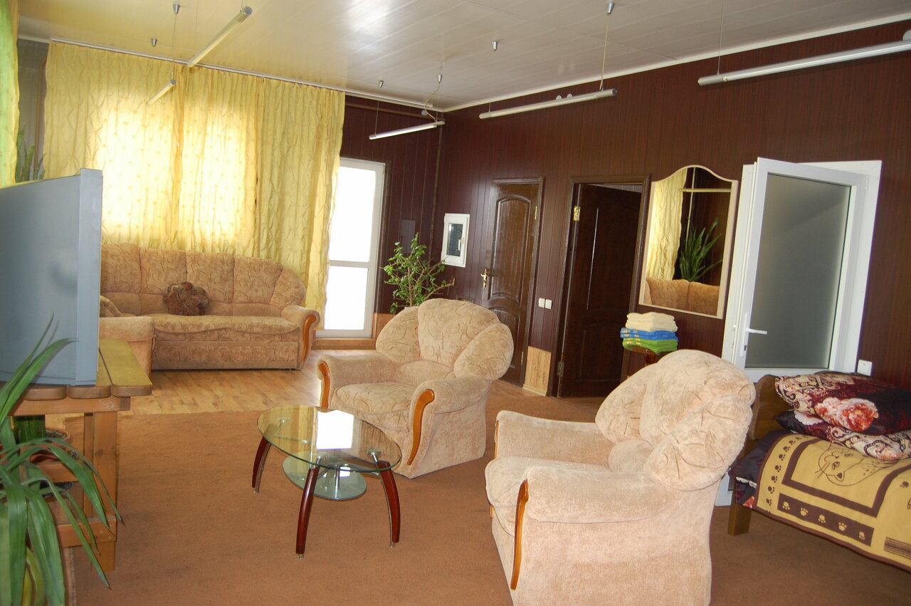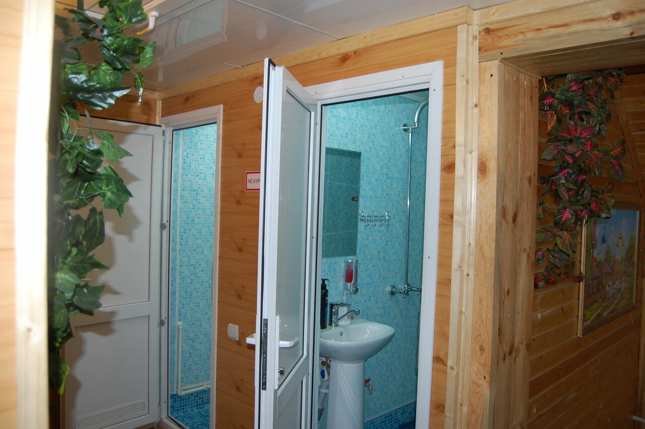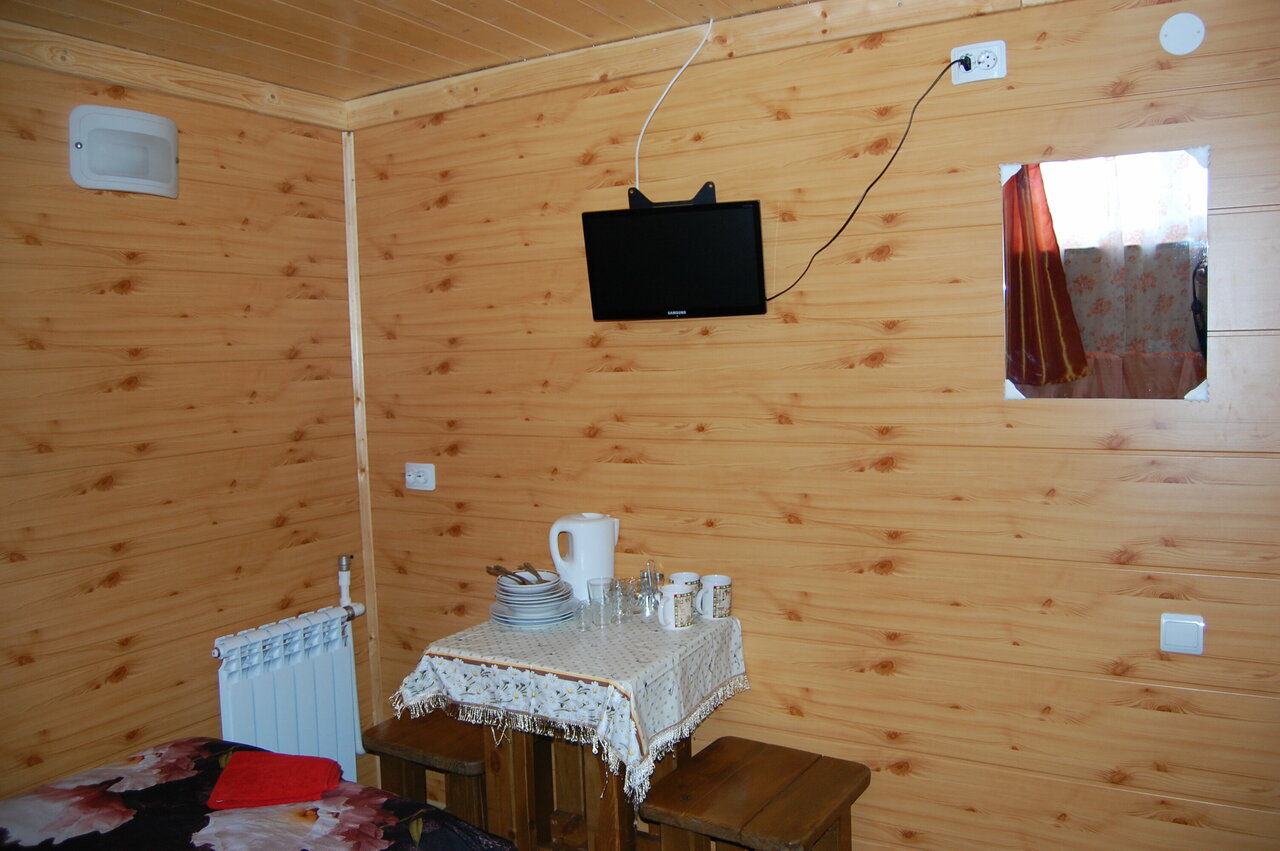 Забронировали по телефону номер. Сказали, что в нем есть кондиционер и свой санузел с душем, 2х комнатный. Озвучили стоимость — 3000р. Попросили предоплату 1000р. Т. к. мы были в дороге, сказали что не сможем этого сделать. По приезду нам сказали, что номера с кондиционерами разобрали и предложили номер за 4000 р. Как оказалось он 2х комнатный с кондиционером и своим санузлом. Спустя некоторое время, нам стало понятно, что мы одни в этой гостинице (Р. S. на ключнике у администратора висели все ключи от номеров, во дворе на парковке стояло 2 машины, одна из которых принадлежала нам,а вторая — администрации отеля). Обстановка номера — 90-е года (не считая кондиционера и телевизора). Душ двойной совмещённый, разделяет их шторка, напор воды был хороший (мы же одни были отеле) . Постельное белье — синтетика (а в дороге все таки хочется выспаться). Так что об этом отеле остались только негативные впечатления.