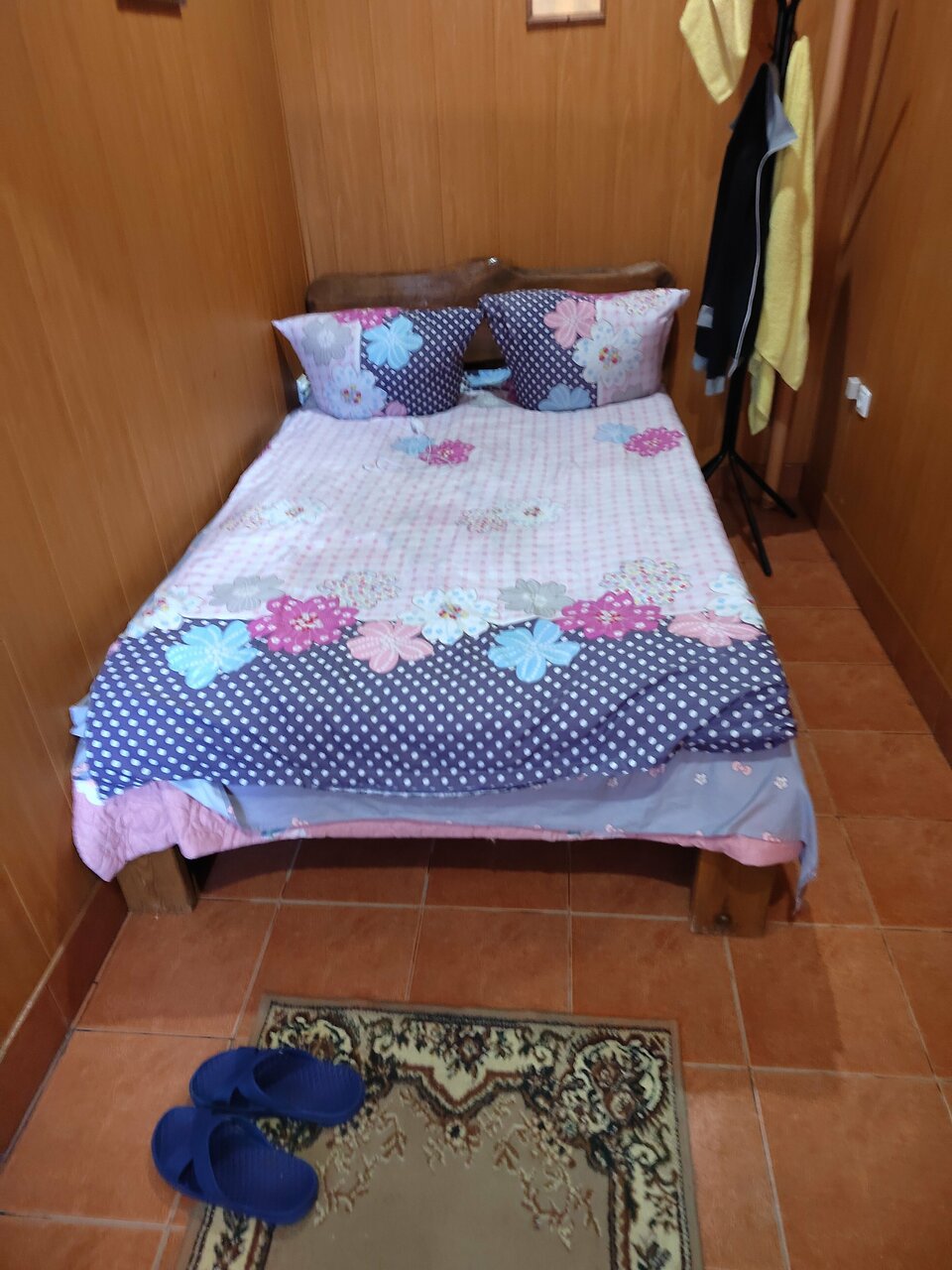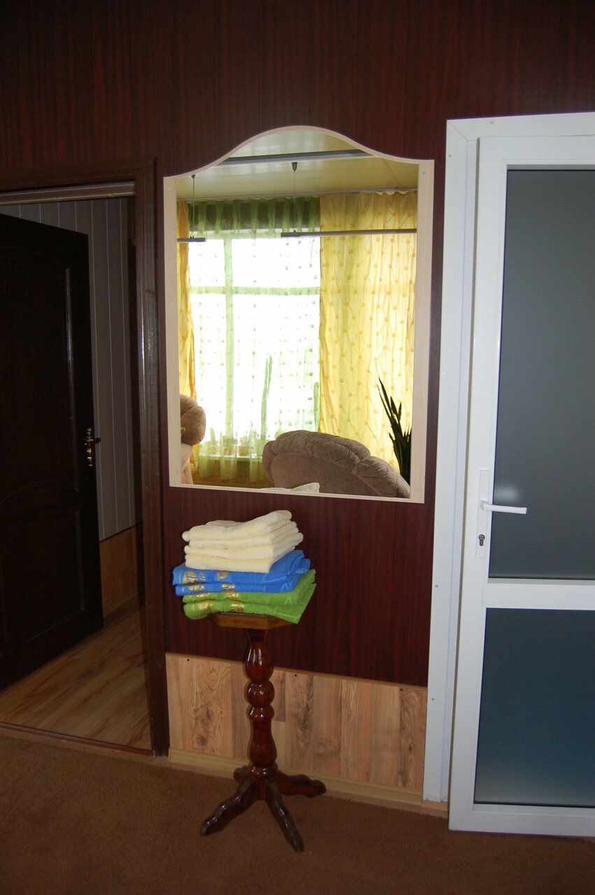 Когда в пяти местах уже всё было занято, а тут нашлось место для пятерых, мы согласились, мы даже предварительно посмотрели номер))Номер за 4500 с двуспальной кроватью и раскладным диваном с удобствами в номере. В отеле гиганские батареи, было очень жарко, никто не укрывался, открывали окно, на улице свора собак, которые периодически лаяли. Огромные каменные старые перьевые подушки. Пыталась примостырется на уголок)) Толи бельё было не чистое, то ли это запах от самой подушки. Номер то мы взяли с удобствами, но то что всё остальные номера с удобствами на этаже и эти удобства рядом с нашим номером мы не учли.)) В 1.15, когда весь этаж сходил пописать, я подумала, что наконец-то усну, муж сказал, что спать не может и давай мы поедем. Маленький квест, как открыть шлагбаум, так как администратора не нашли и свобода!!! В 9 утра были дома и легли в свою кровать