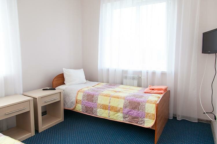 Снимали номер для ночлега, на 12 часов за 1.5тыс.р. В целом чисто, хорошее постельное белье, но ковролин на полу обшарпанный, босиком не приходишь. В душе не уходила вода, стоишь в ней по щиколотку. Кровать, матрац хорошие, в меру жёсткие, ещё не сильно продавленные. Расположение от дороги удачное, машин не слышно. Переночевать можно, рекомендую.