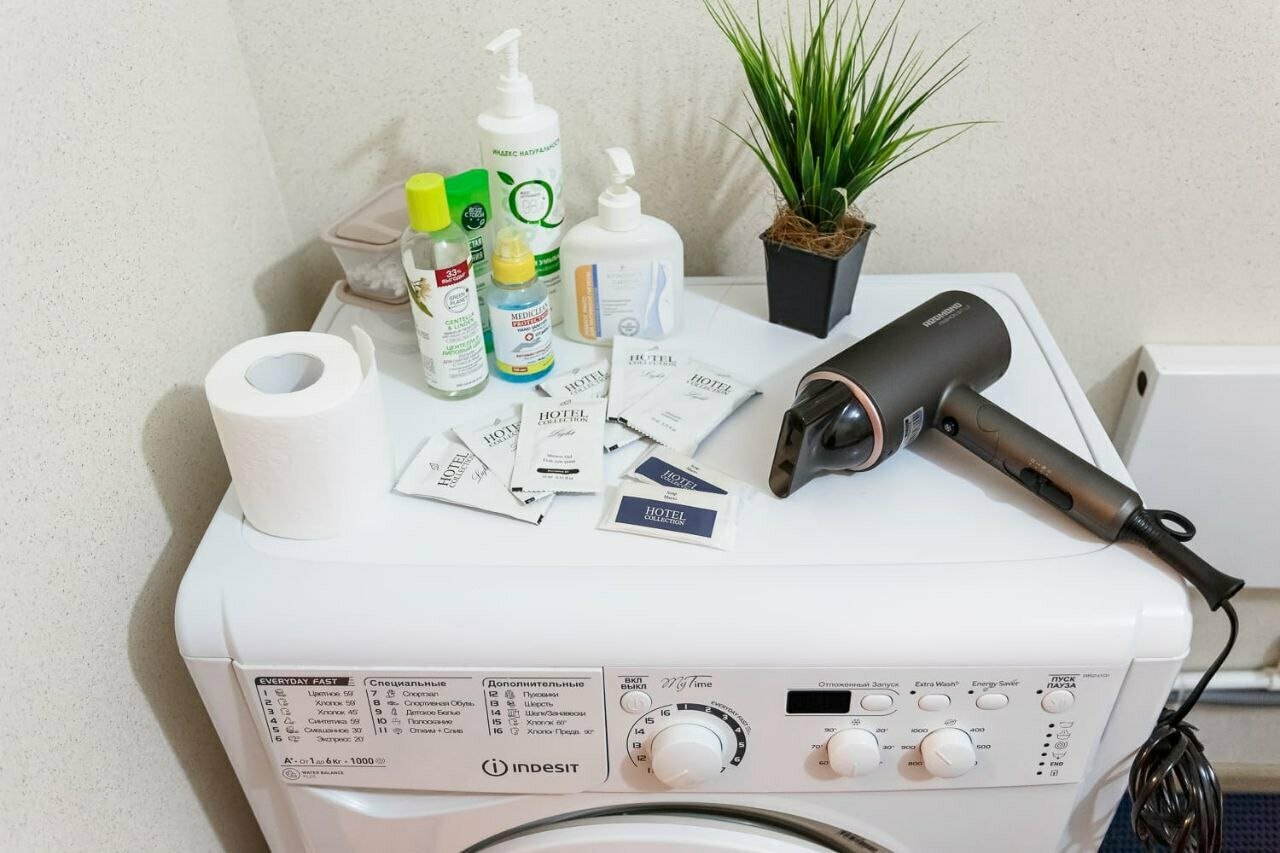 - Полная комплектация (микроволновка, телевизор, чайник, холодильник, кондиционер, утюг, стиральная машинка).