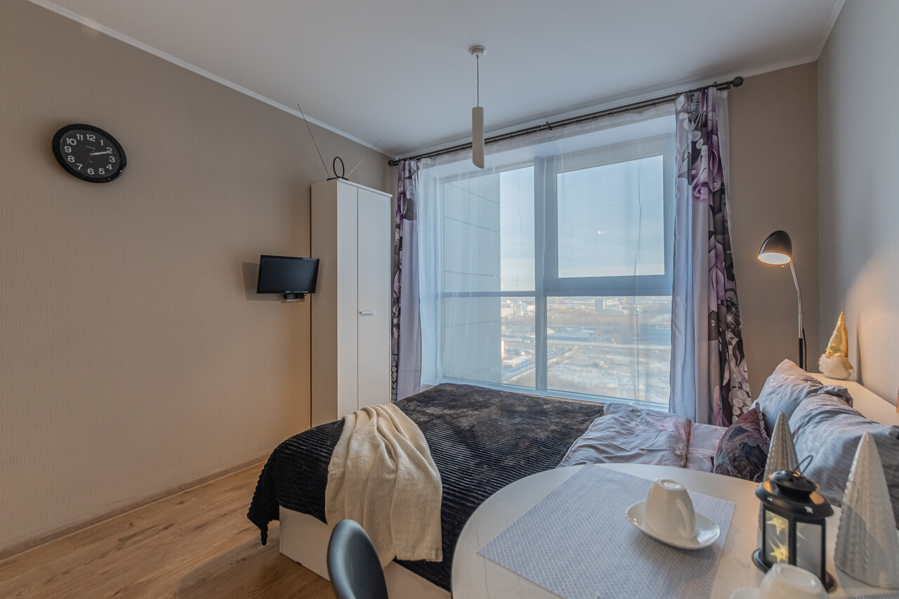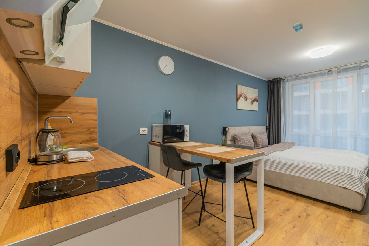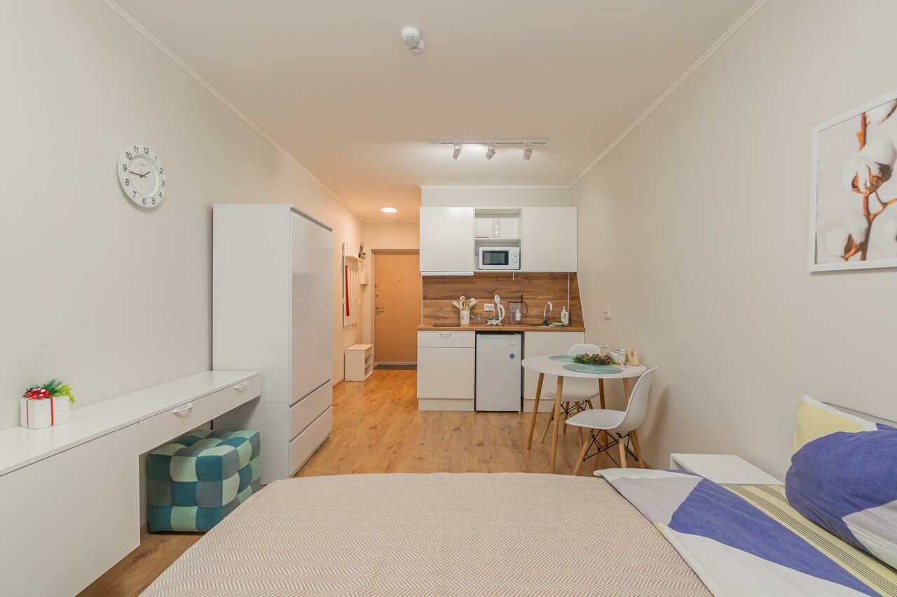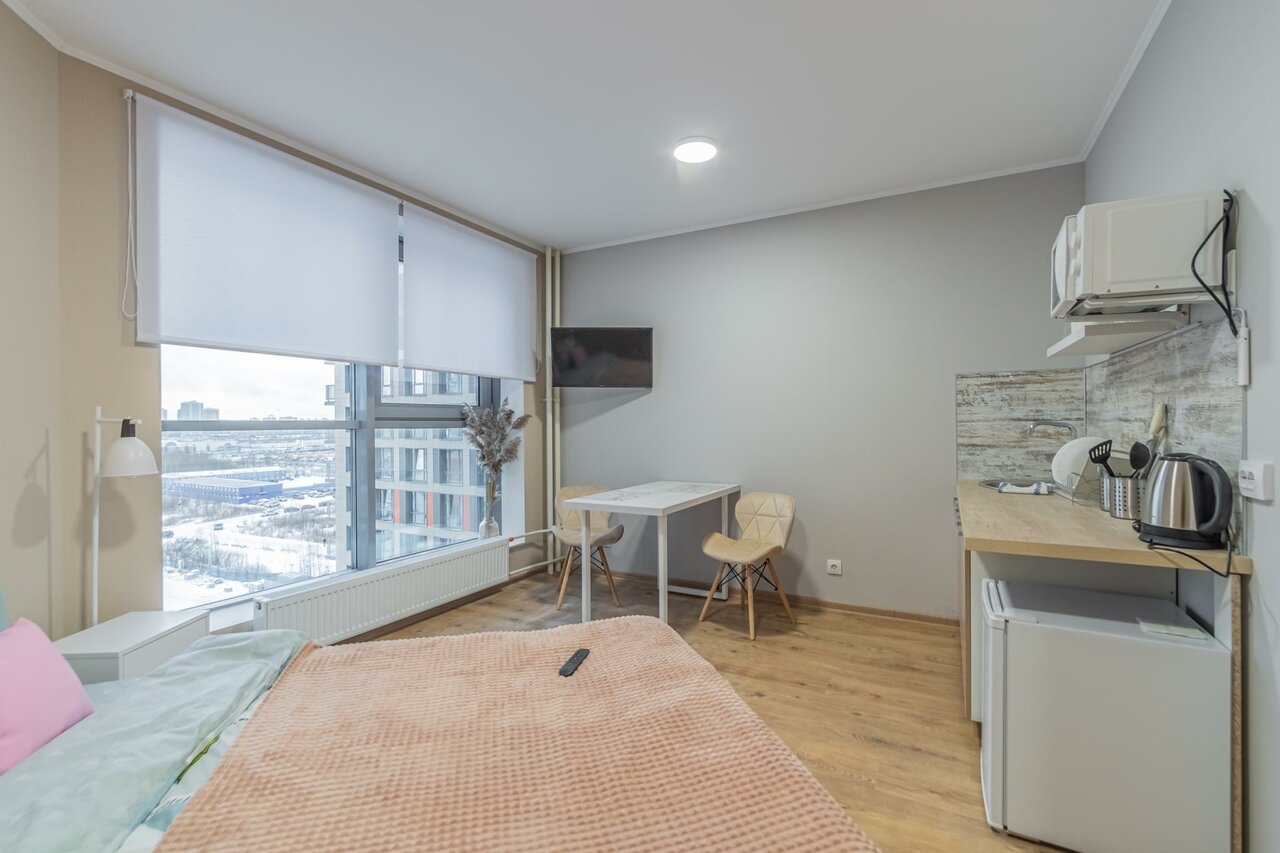 Апартаменты небольшие, но уютные. В наличии все,что нужно для комфортного проживания и приготовления пищи. Менеджер всегда на связи, у меня была пара просьб, их выполнили очень быстро. В самом ЖК есть магазины, напротив через дорогу торговый центр. Каршеринг рядом есть всегда , до метро Парнас 10 минут спокойной ходьбы