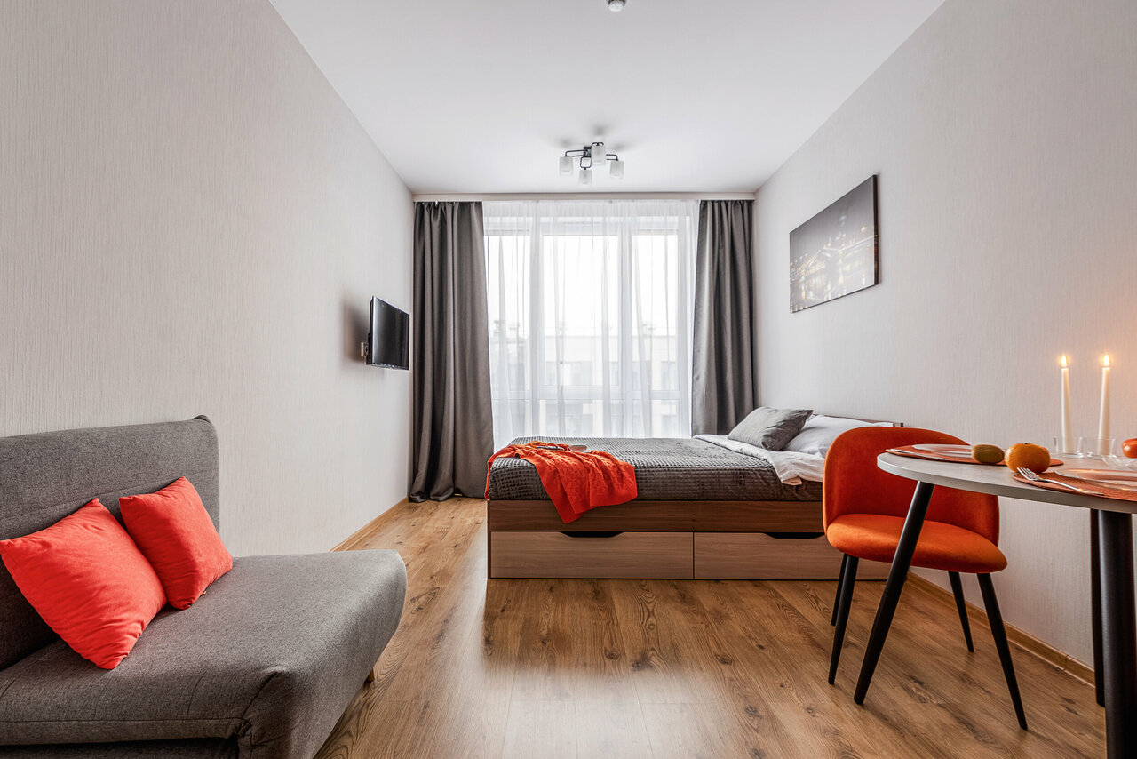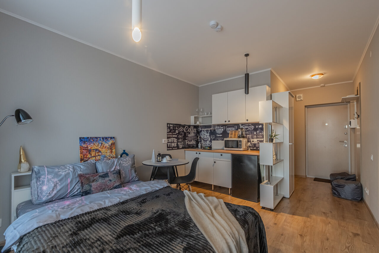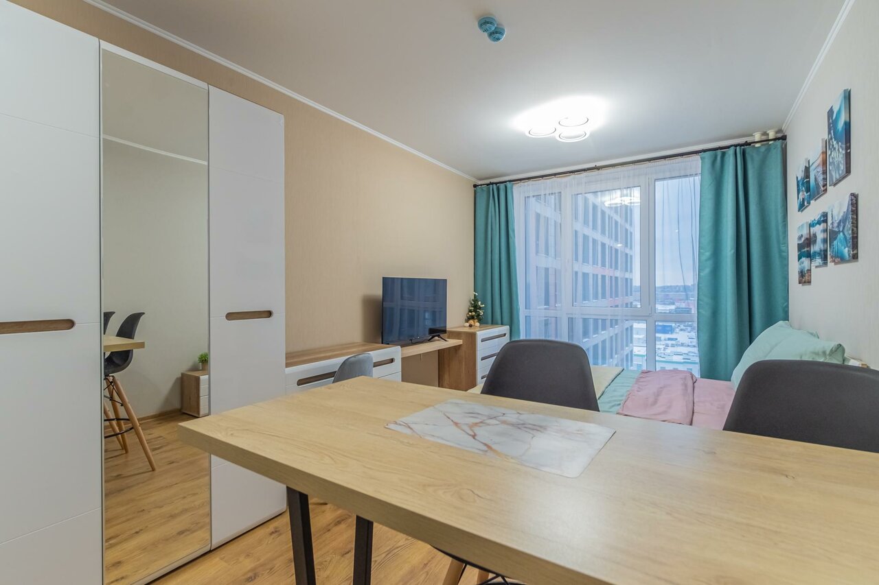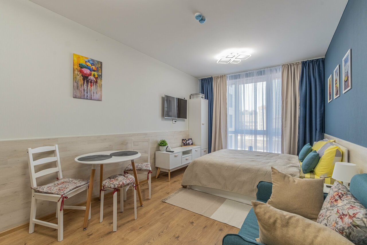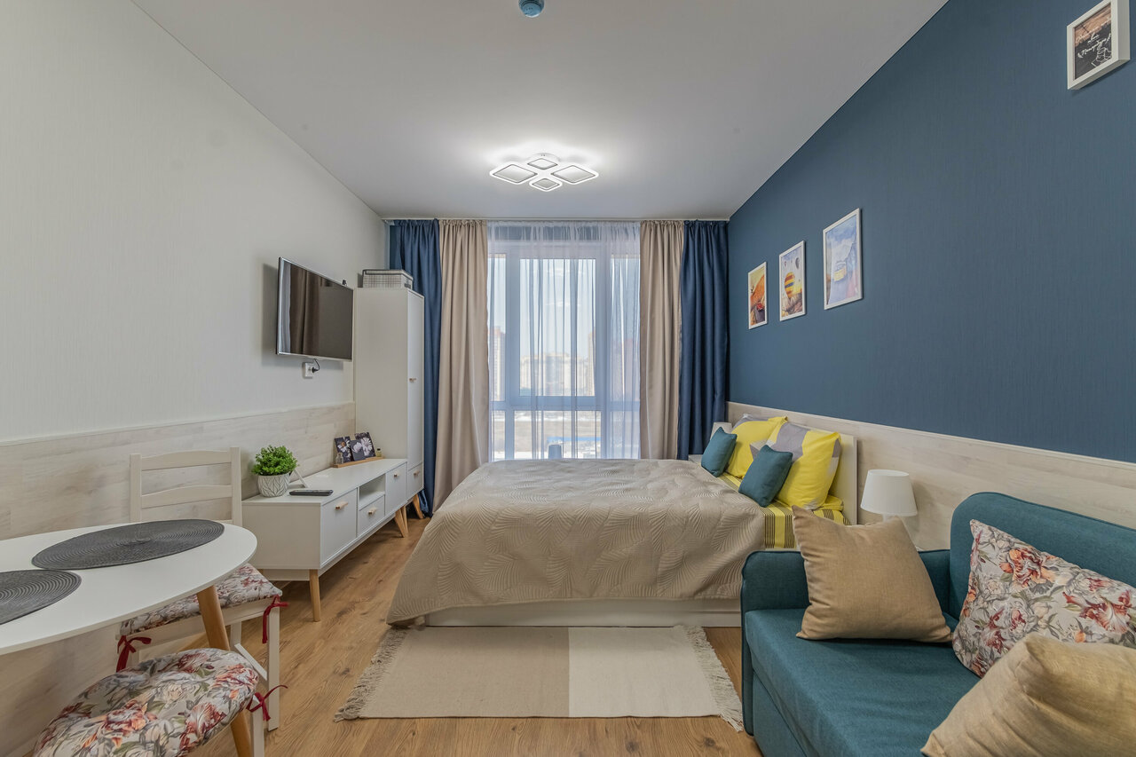 Апартаменты небольшие, но уютные. В наличии все,что нужно для комфортного проживания и приготовления пищи. Менеджер всегда на связи, у меня была пара просьб, их выполнили очень быстро. В самом ЖК есть магазины, напротив через дорогу торговый центр. Каршеринг рядом есть всегда , до метро Парнас 10 минут спокойной ходьбы