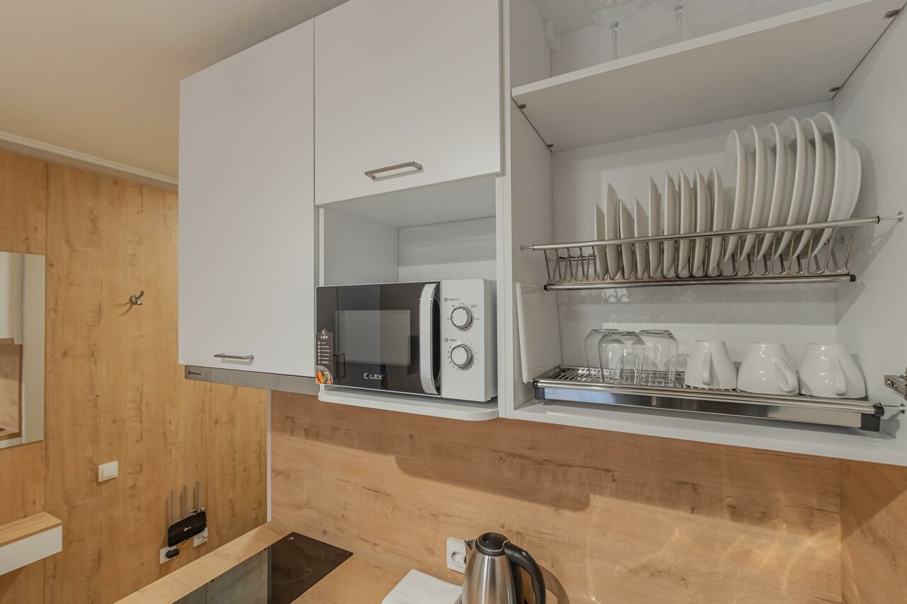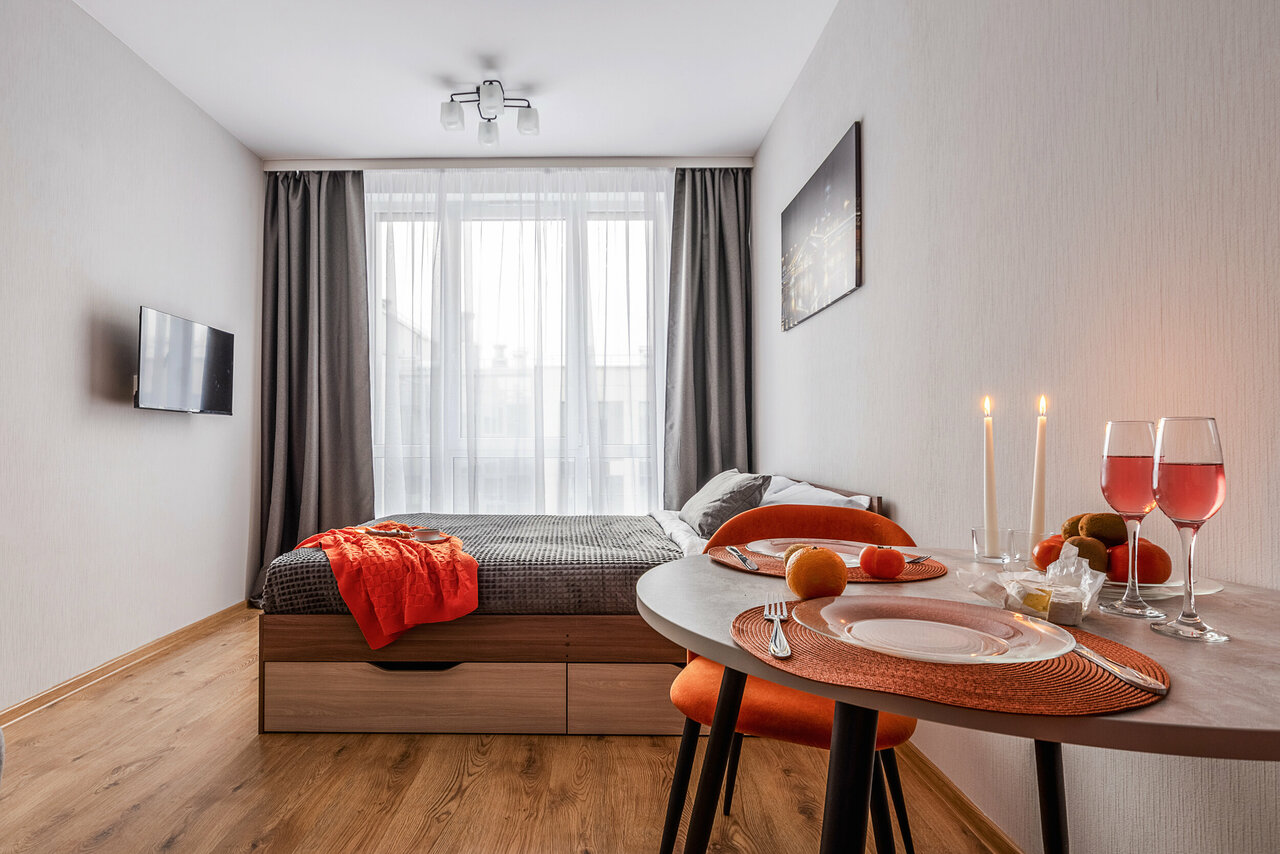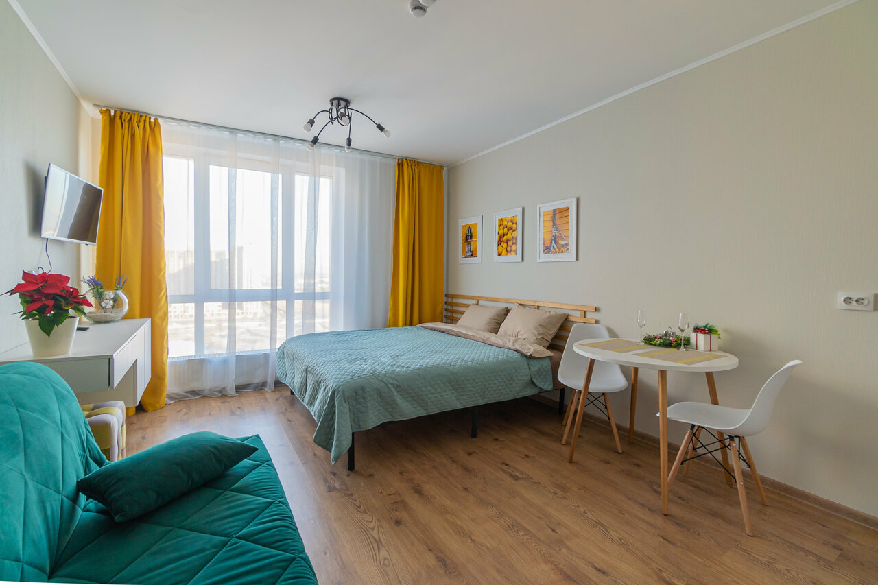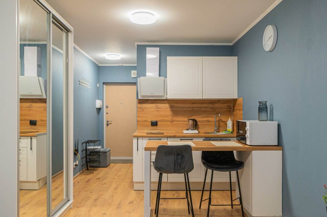 Апартаменты небольшие, но уютные. В наличии все,что нужно для комфортного проживания и приготовления пищи. Менеджер всегда на связи, у меня была пара просьб, их выполнили очень быстро. В самом ЖК есть магазины, напротив через дорогу торговый центр. Каршеринг рядом есть всегда , до метро Парнас 10 минут спокойной ходьбы